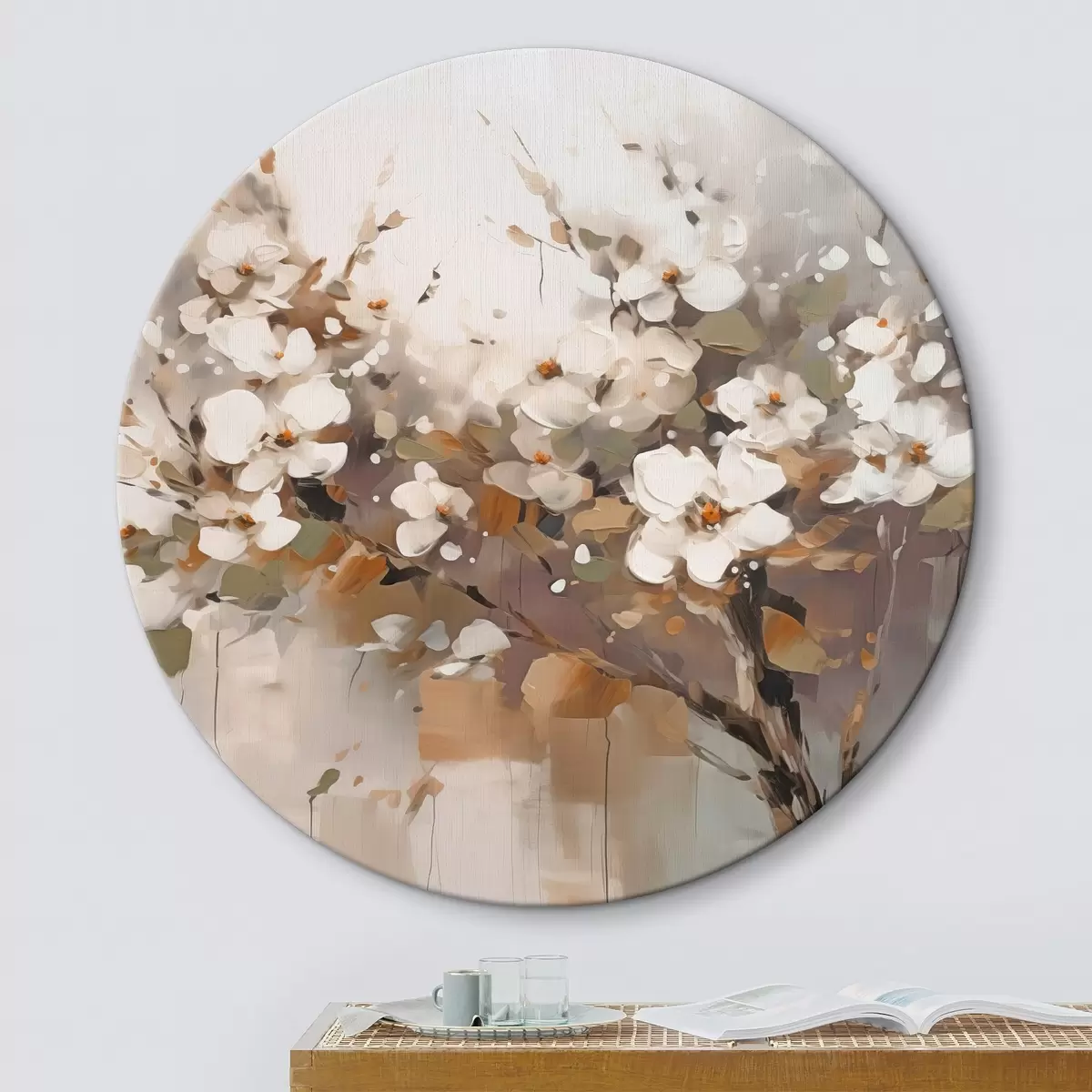 Runde Wandbilder Abstrakter Zweig mit Blumen Nr r45579
