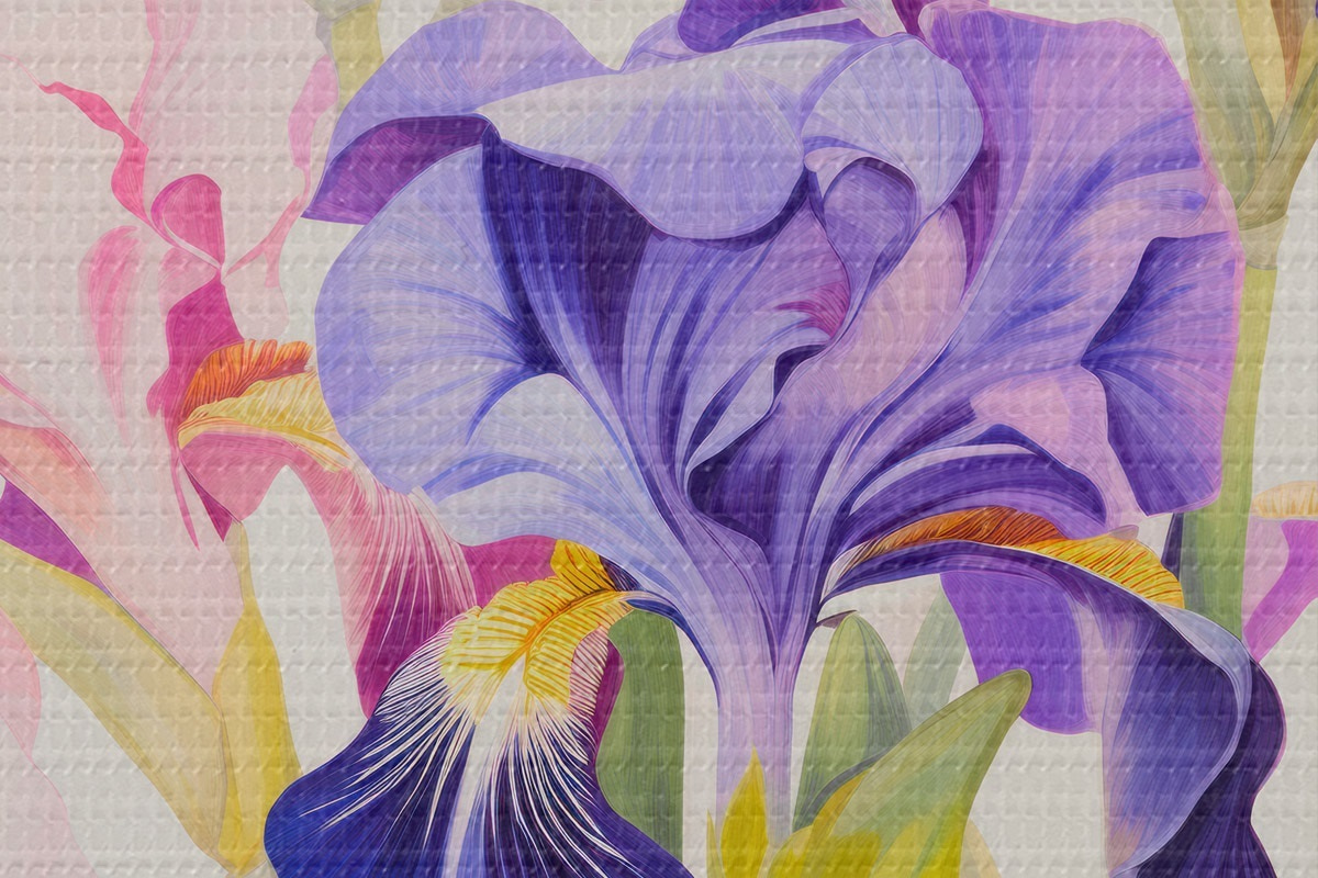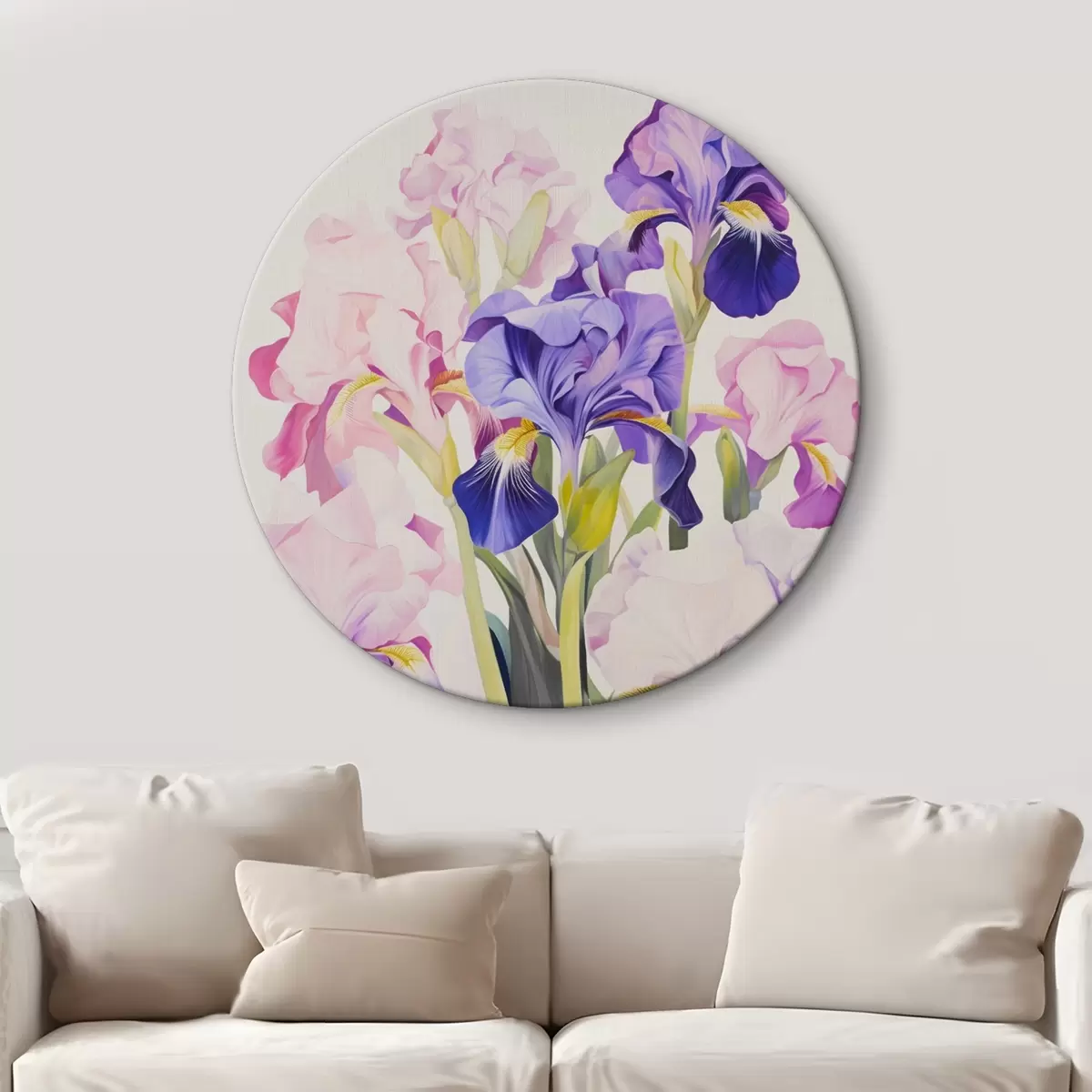 Runde Wandbilder Blumenstrauß aus Schwertlilien in Lila-Tönen r45597