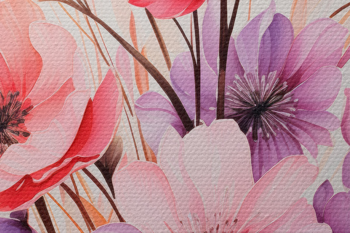 Runde Wandbilder Zarter Blumenstrauß aus rosa und lila Mohnblumen auf hellem Hintergrund, Aquarellstil Nr r45601