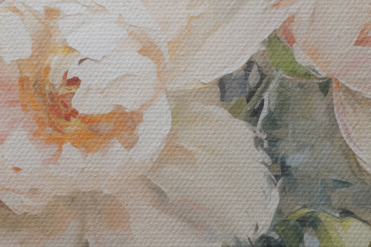 Drei Materialtypen stehen zur Verfügung: Economic Canvas - ein dichtes und haltbares Material für den Digitaldruck, identisch mit Malerleinwand, wasserfeste Oberfläche, realistische Wiedergabe von Details, mittelkörniges Material. Premium Canvas - die Textur ähnelt der einer Malerleinwand (verwobene kleine Fäden). Weiche, detaillierte Wiedergabe des Bildes auf einer matten Oberfläche. Eco-Premium - hochwertiges Gewebe aus 100% Baumwolle. Dank der natürlichen Baumwollfasern ist das Material langlebig und verschleißfest. Hervorragende Farbwiedergabe und Detailtreue.