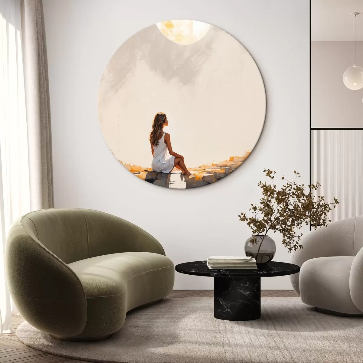Runde Wandbilder Mädchen im weißen Kleid sitzt unter einem großen Mond Nr r45621