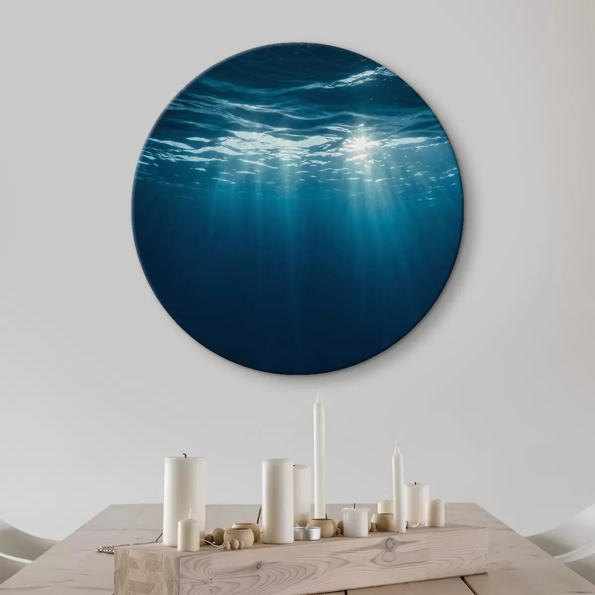 Runde Wandbilder Sonnenstrahlen unter der Wasseroberfläche Nr r45625