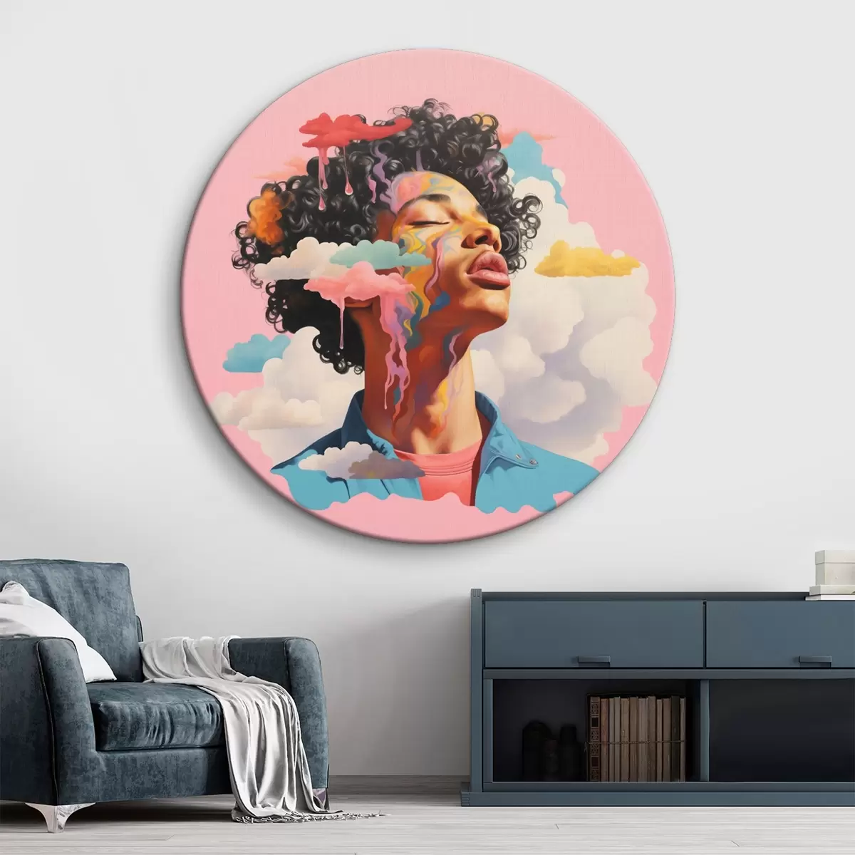 Runde Wandbilder Träumer in den Wolken im Aquarellstil Nr r45636