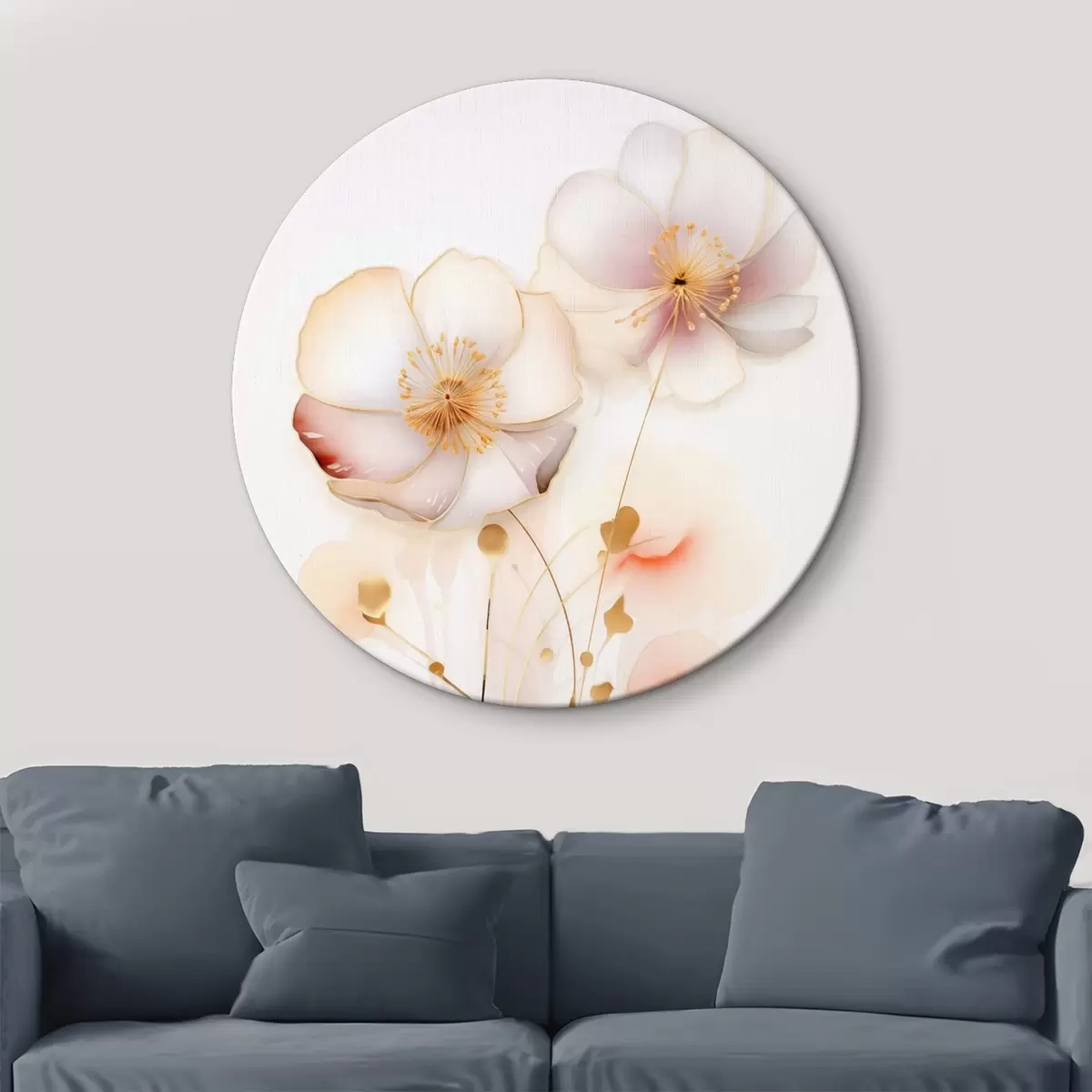 Runde Wandbilder Pastellfarbene Mohnblumen im abstrakten Stil r45643