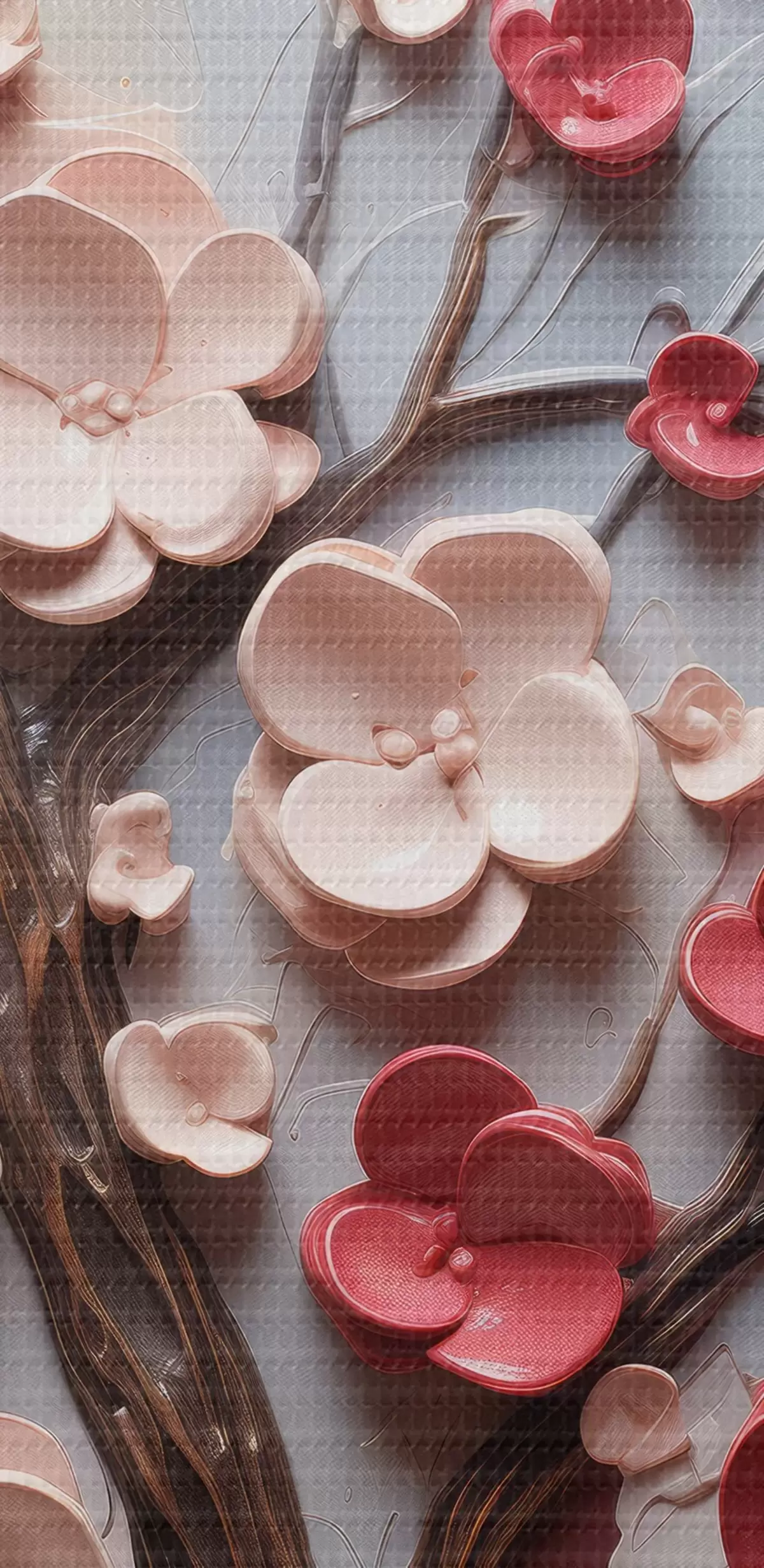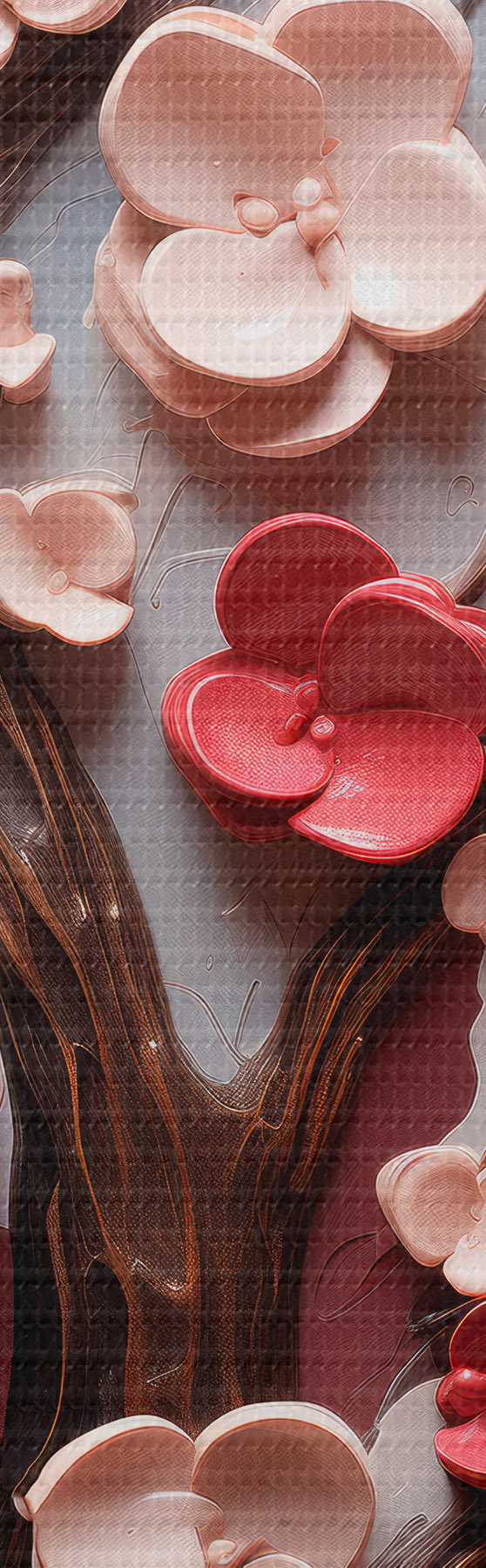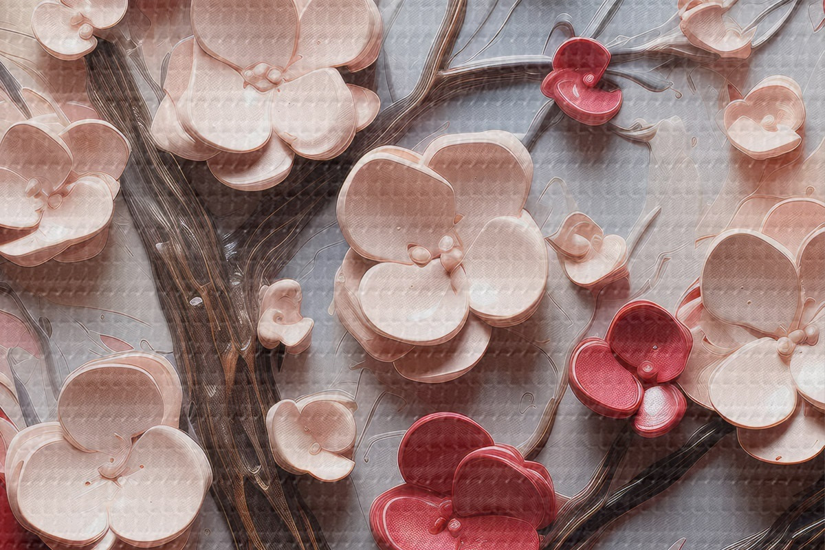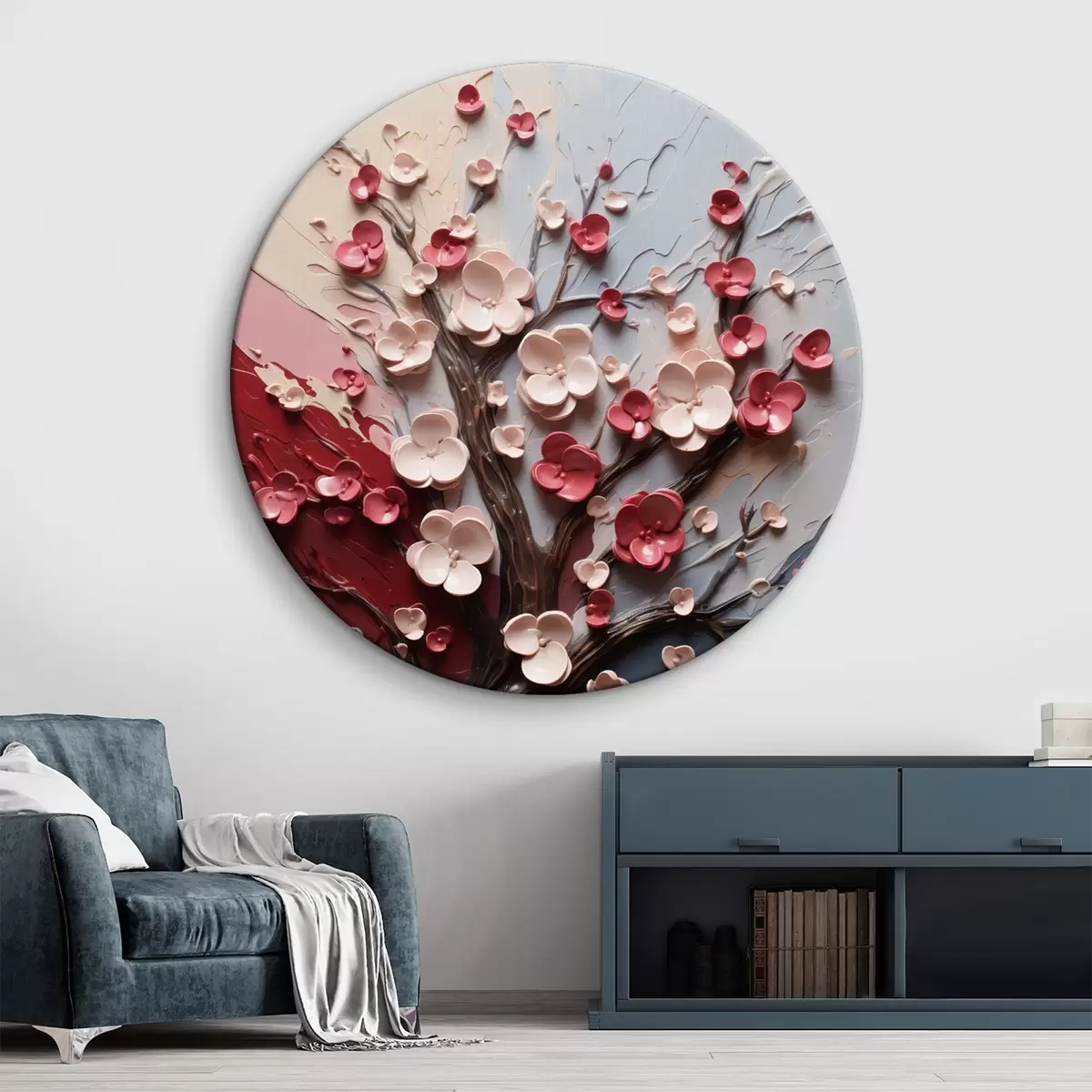 Runde Wandbilder Volumetrische Sakura in strukturiertem Malstil r45650