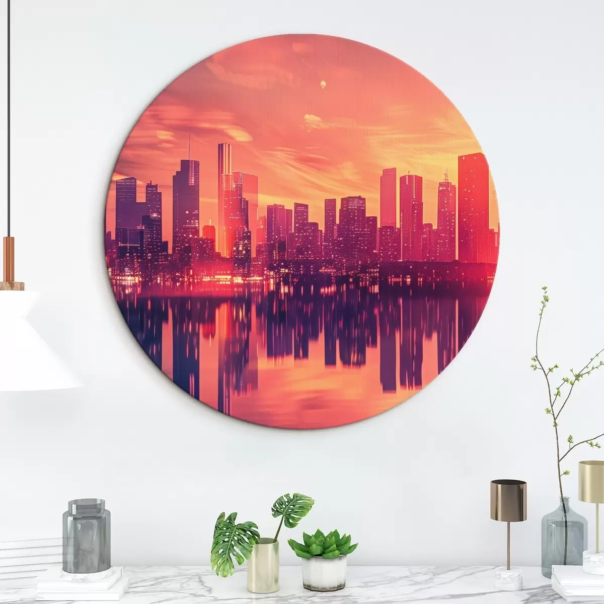 Runde Wandbilder Stadt bei Sonnenuntergang r45658