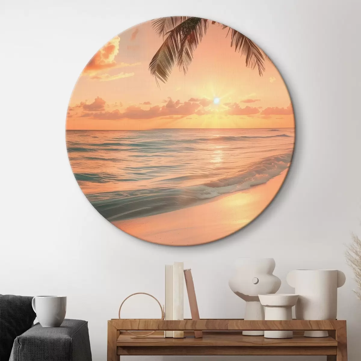 Runde Wandbilder Sonnenuntergang auf See r45661