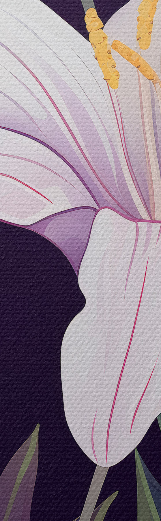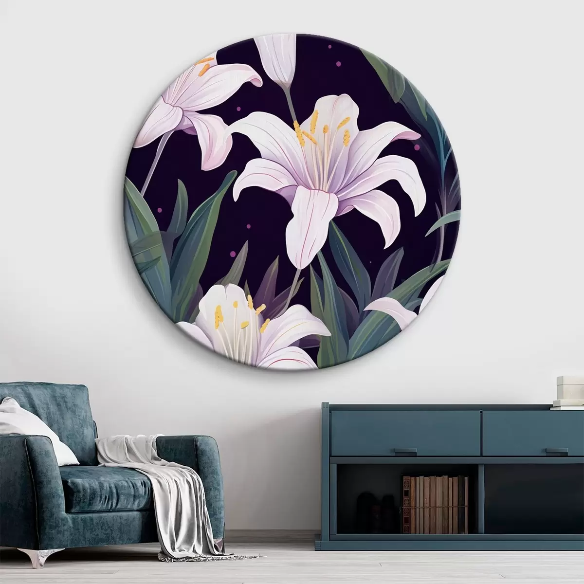 Runde Wandbilder Zarte Lilien auf dunklem Hintergrund mit grünen Blättern r45697