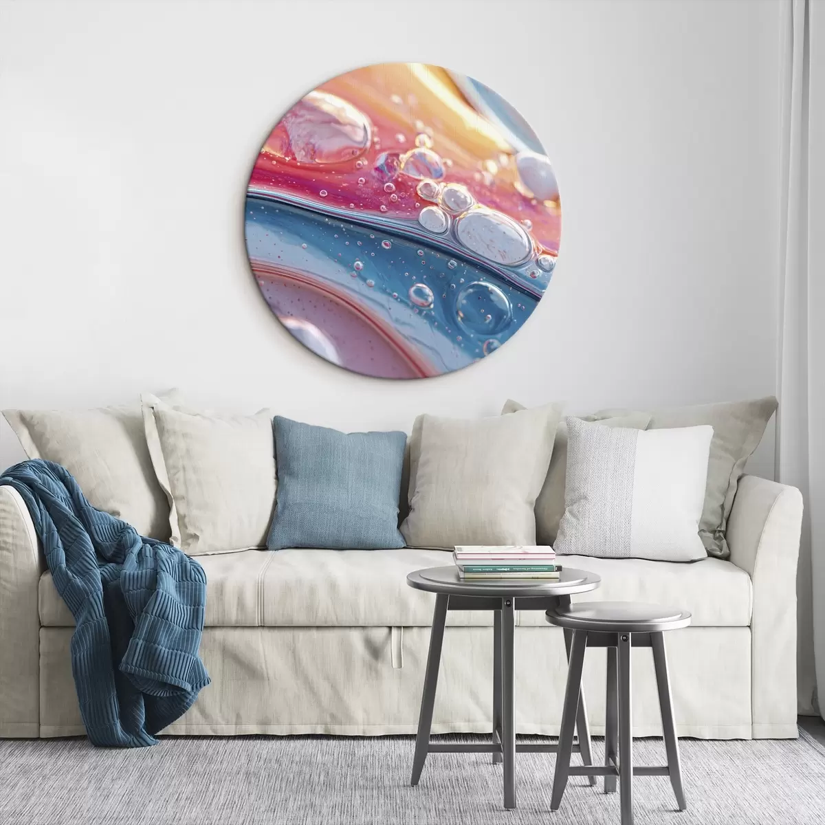 Runde Wandbilder bunte Wellen mit Blasen r45707