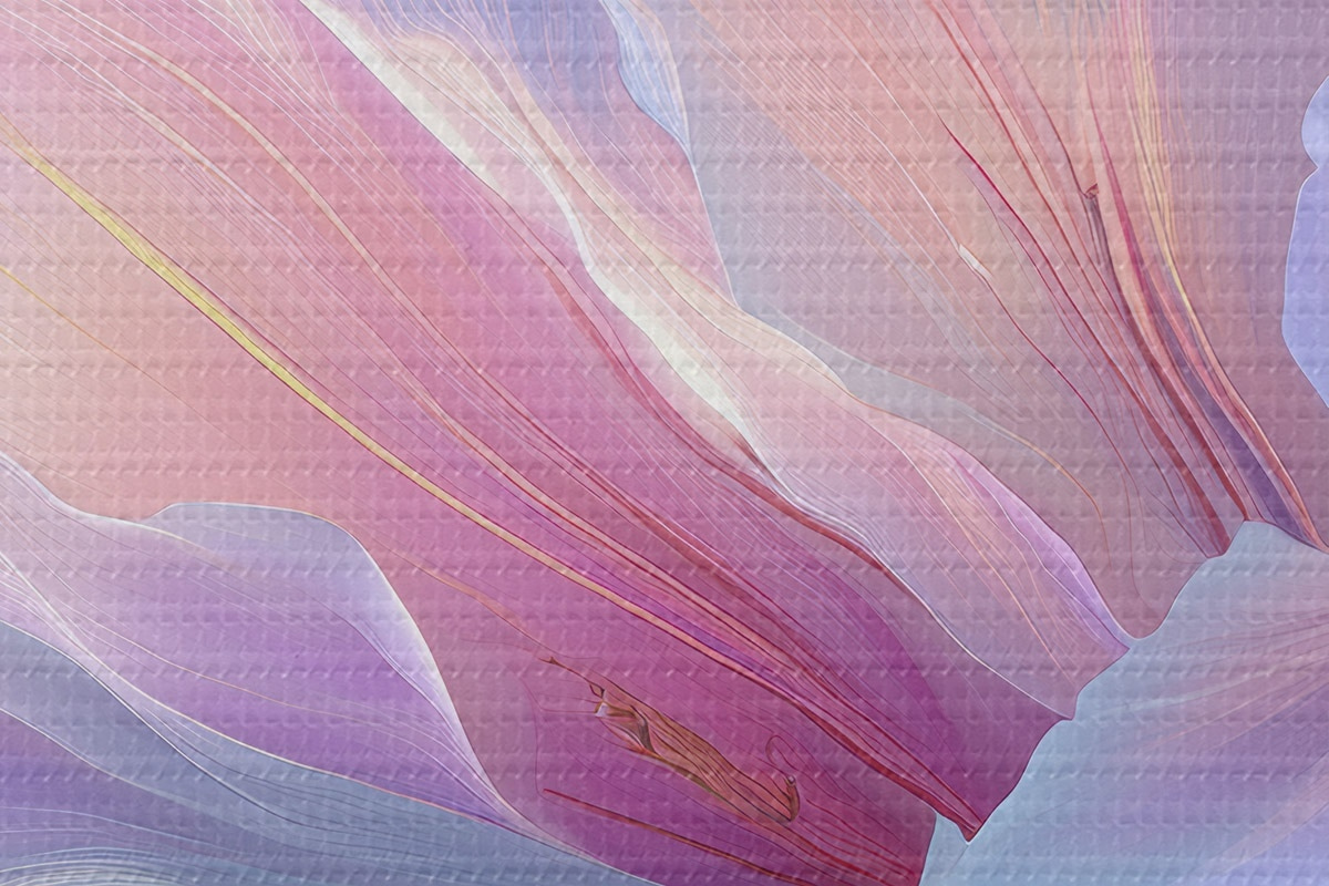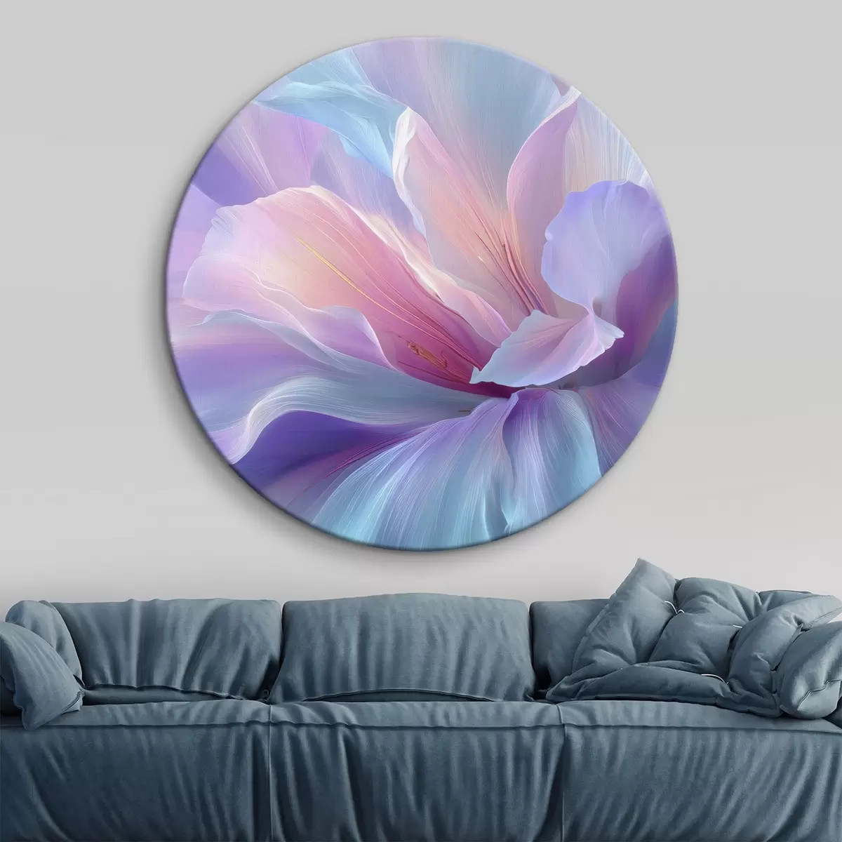 Runde Wandbilder eine zarte Fantasieblume mit Blütenblättern in Violett-, Blau- und Rosatönen. Nr r45710