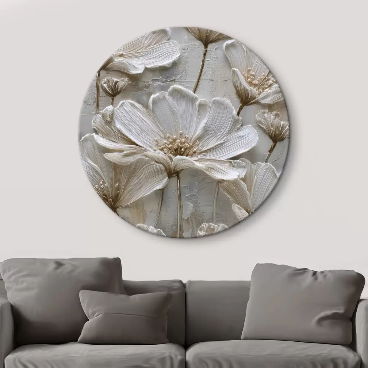 Runde Wandbilder cremefarbene Blumen im Imitations-Impasto-Stil r45713