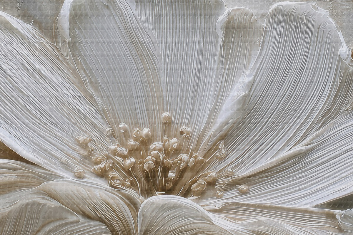Runde Wandbilder cremefarbene Blumen im Imitations-Impasto-Stil Nr r45713