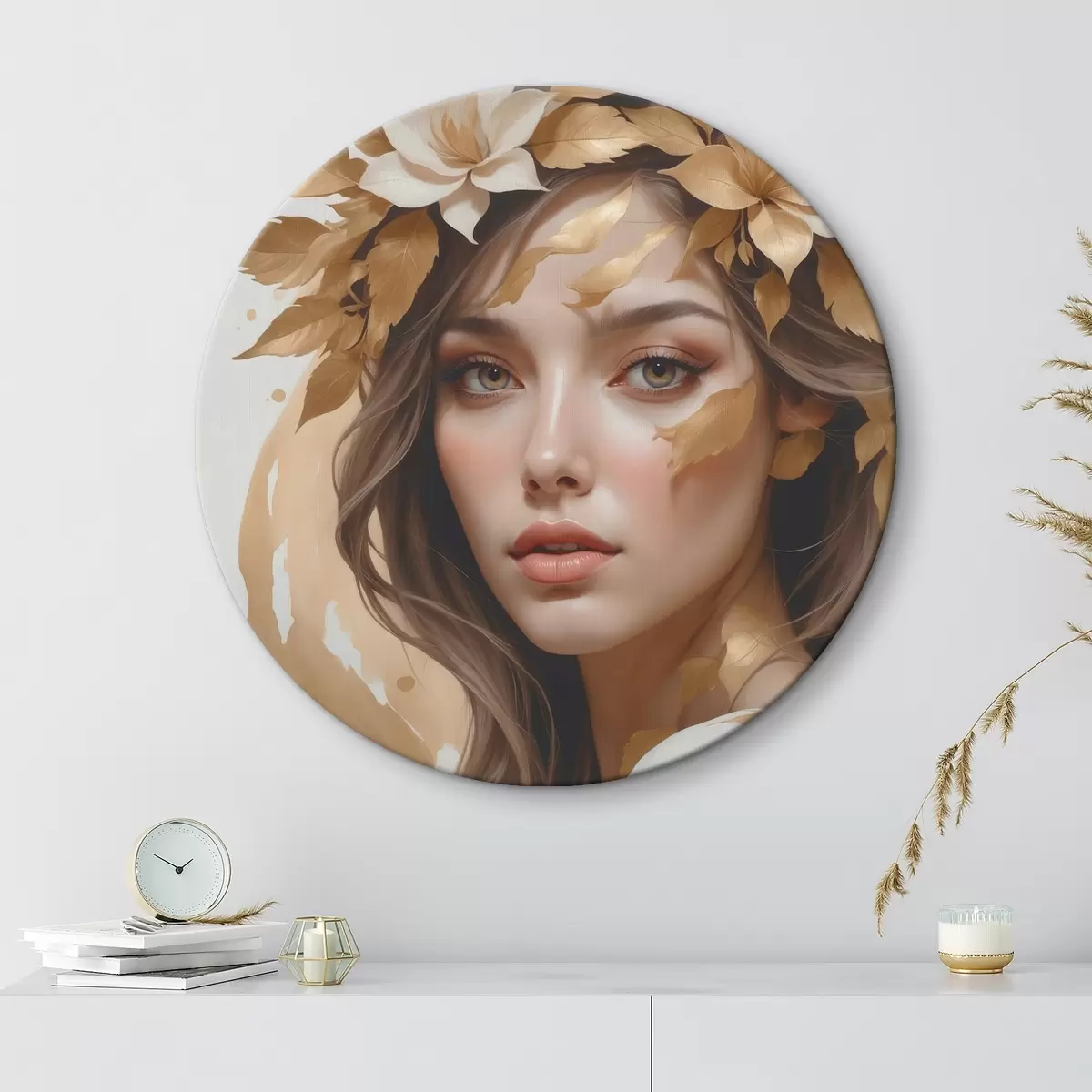 Runde Wandbilder Eine Frau mit Blättern im Haar Nr r45748