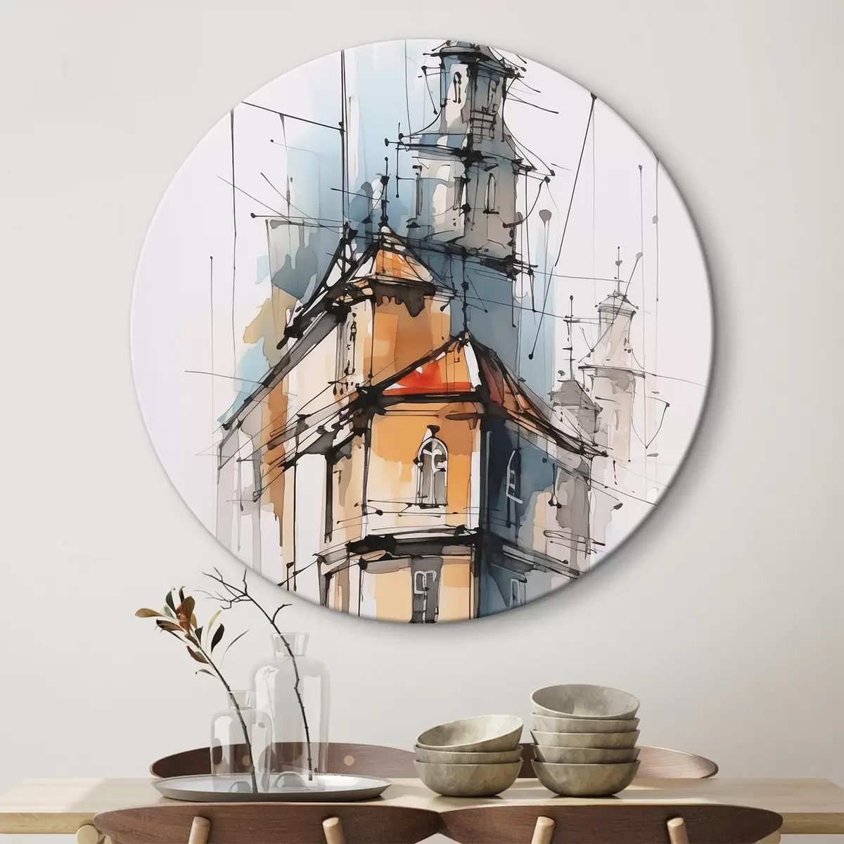 Runde Wandbilder Häuser-Imitation, Skizze und Aquarell Nr r45765