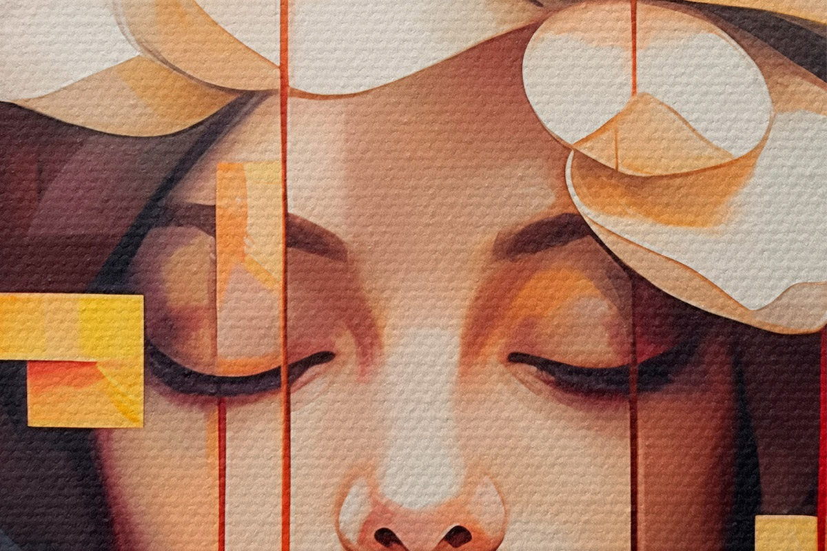 Um die Leinwand auf Keilrahmen zu spannen, ohne das Bild zu beschädigen, verwenden wir ein gespiegeltes Bild.