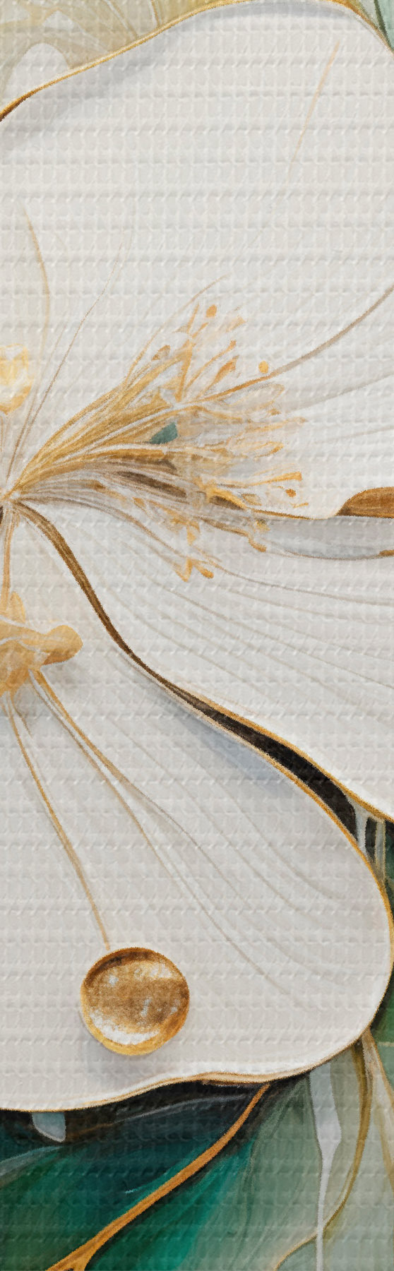 Runde Wandbilder Eine weiße Blume mit gelb-orangefarbenen Details und grünen Blättern Nr r45815