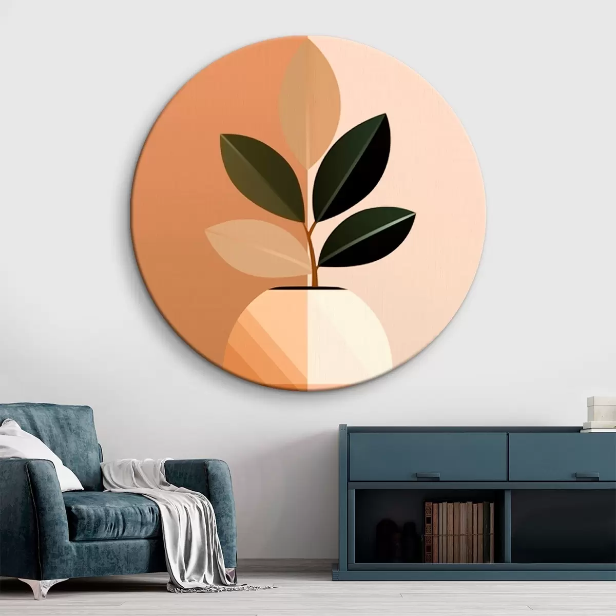 Runde Wandbilder Geometrische Vase mit Blättern Nr r45833