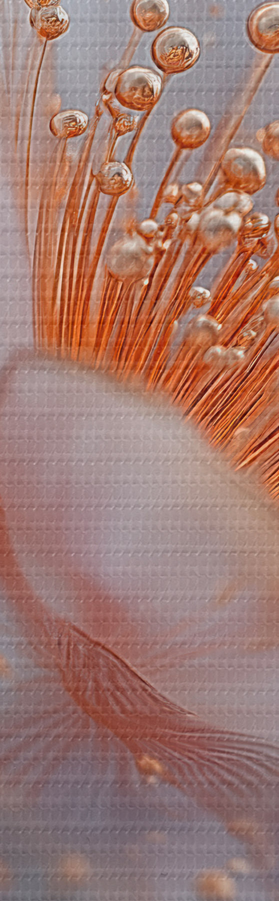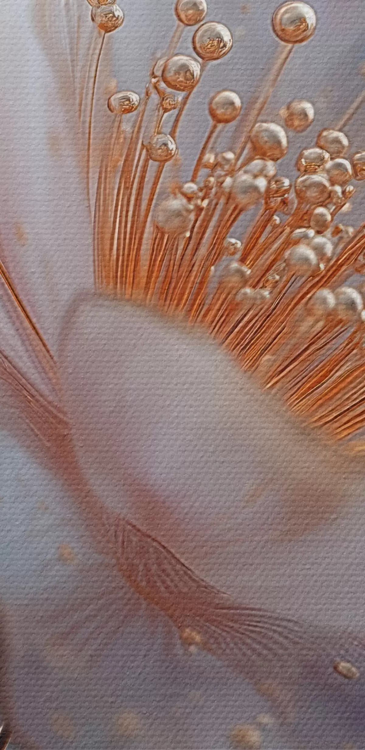 Runde Wandbilder Durchscheinende Blume mit kupferfarbenen Staubblättern auf blauem Hintergrund Nr r45880