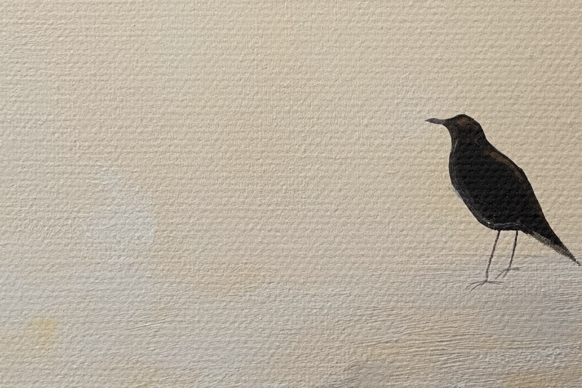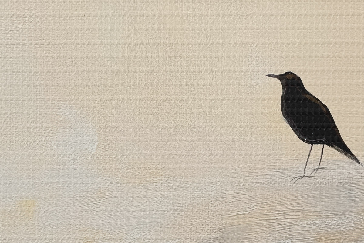 Runde Wandbilder Einsamer Vogel auf warmem beigem Hintergrund Nr r45882