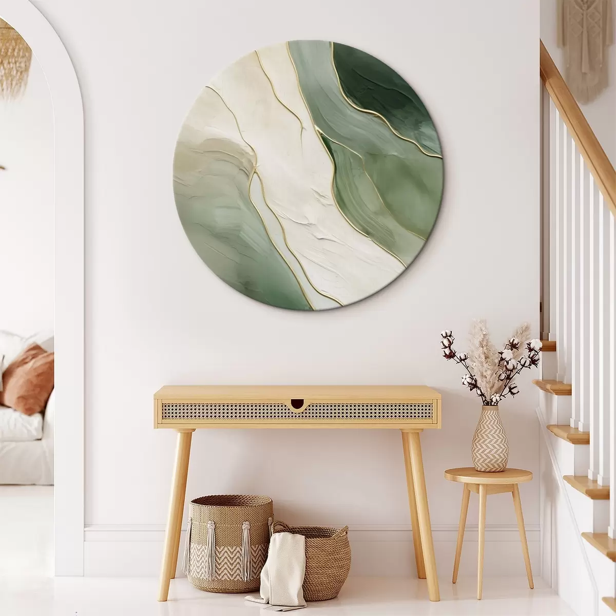 Runde Wandbilder Smaragdgrüne Abstraktion mit feinen gelben Linien r45888