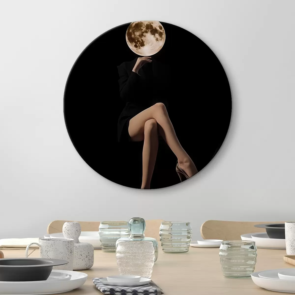 Runde Wandbilder Silhouette mit dem Mond als Gesicht, Minimalismus r45891