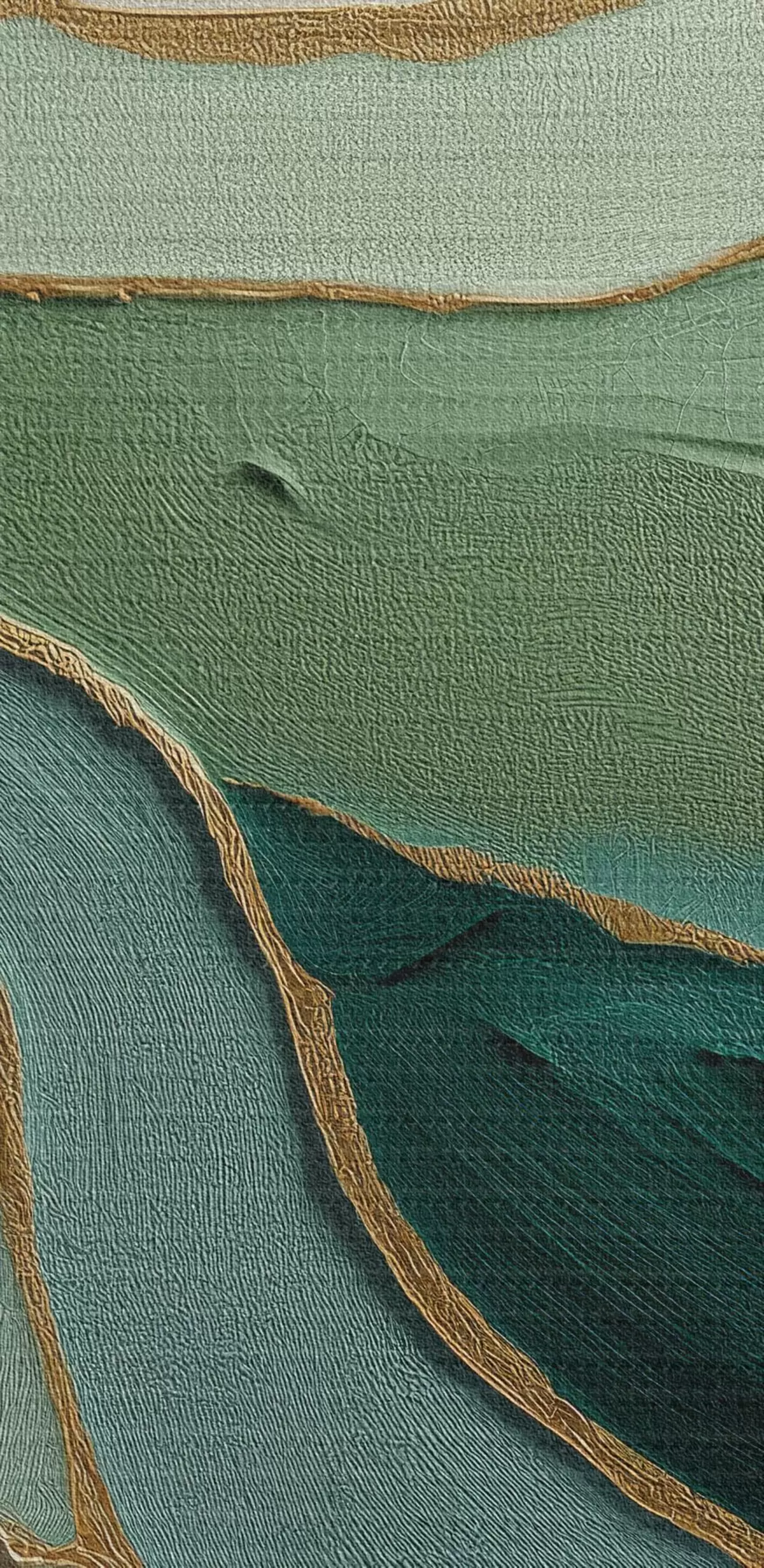 Runde Wandbilder Mehrschichtige grüne Abstraktion mit gelben Linien und Tiefe Nr r45902