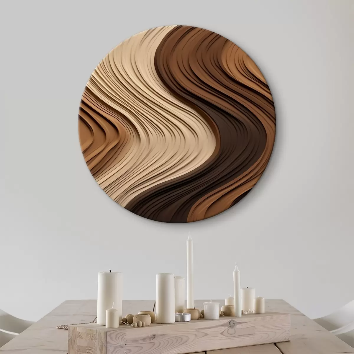 Runde Wandbilder Vertikale Wellen in warmen beige-braunen Schichten Nr r45905