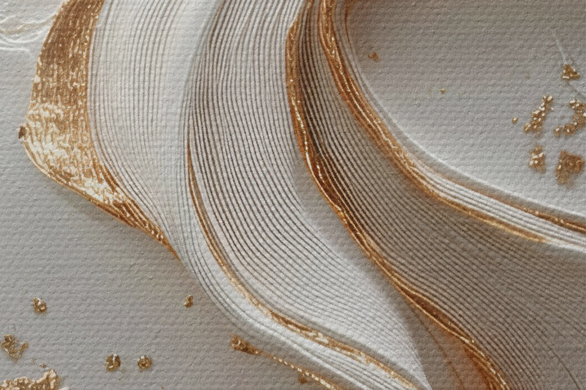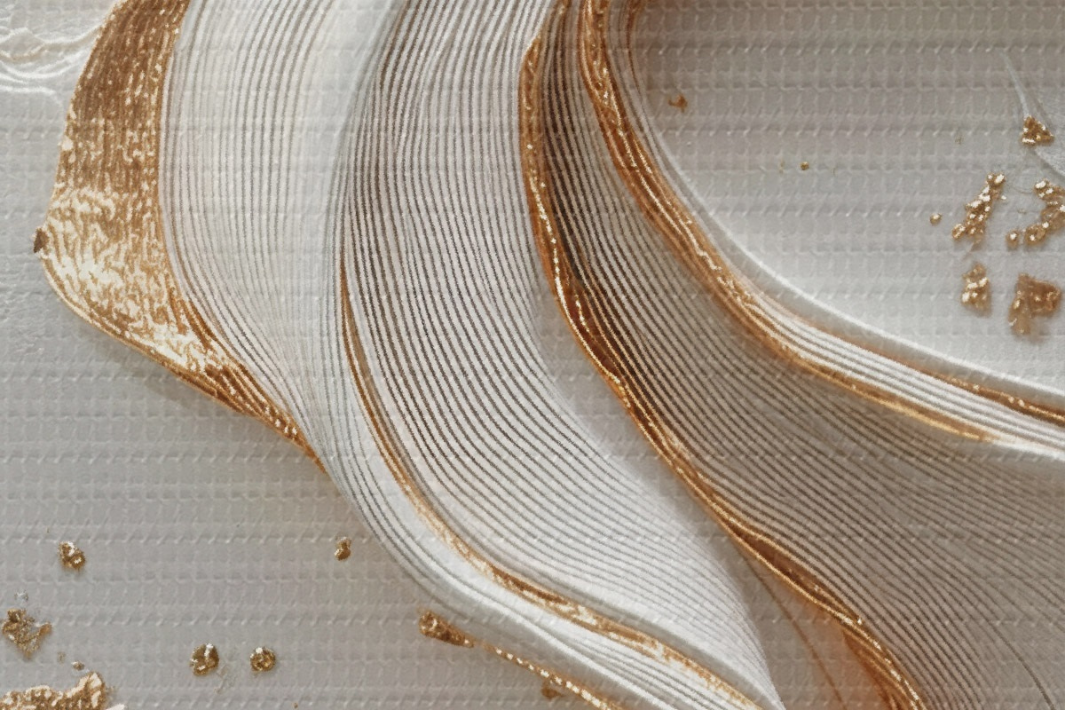 Runde Wandbilder Weiß-gelbe strukturierte Striche mit metallischen Akzenten r45906
