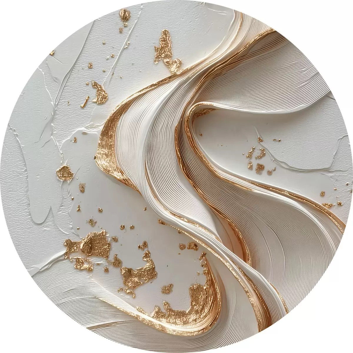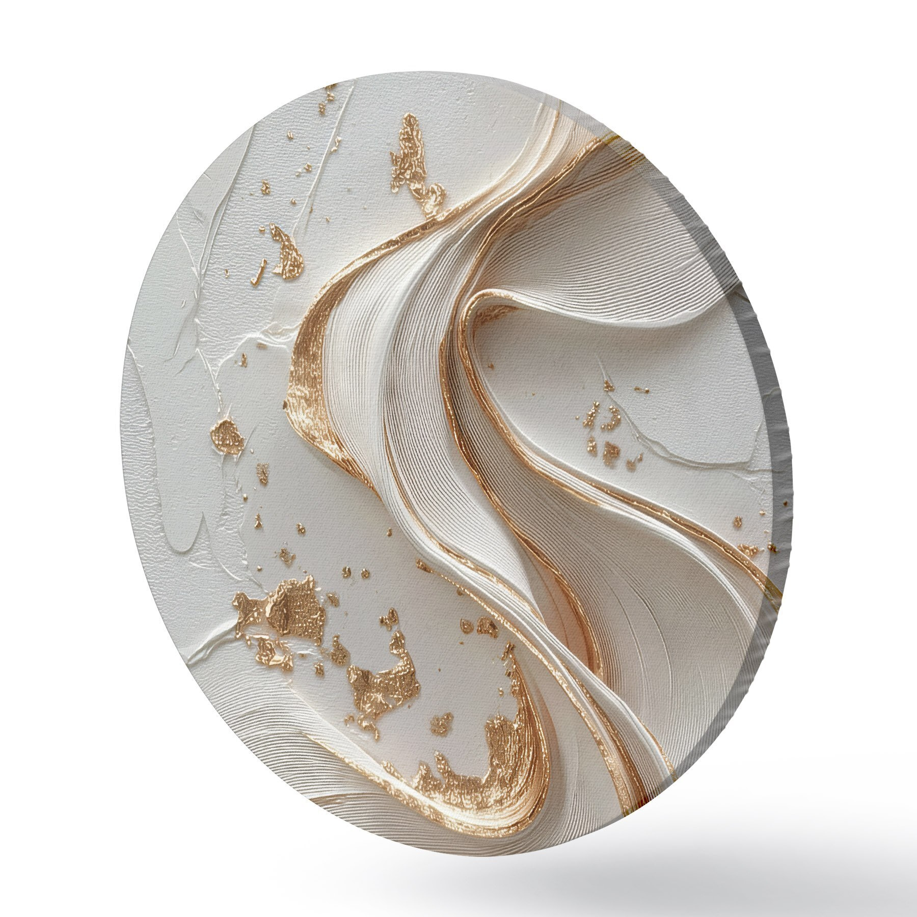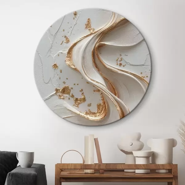 Runde Wandbilder Weiß-gelbe strukturierte Striche mit metallischen Akzenten Nr r45906
