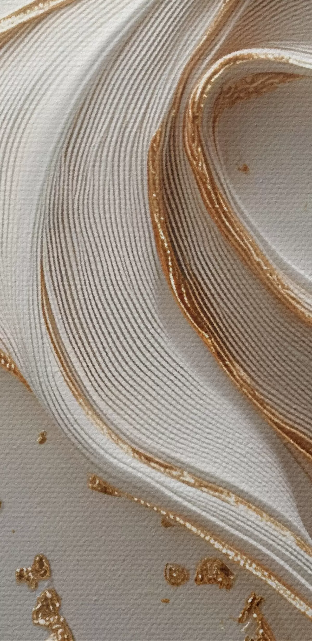 Runde Wandbilder Weiß-gelbe strukturierte Striche mit metallischen Akzenten r45906