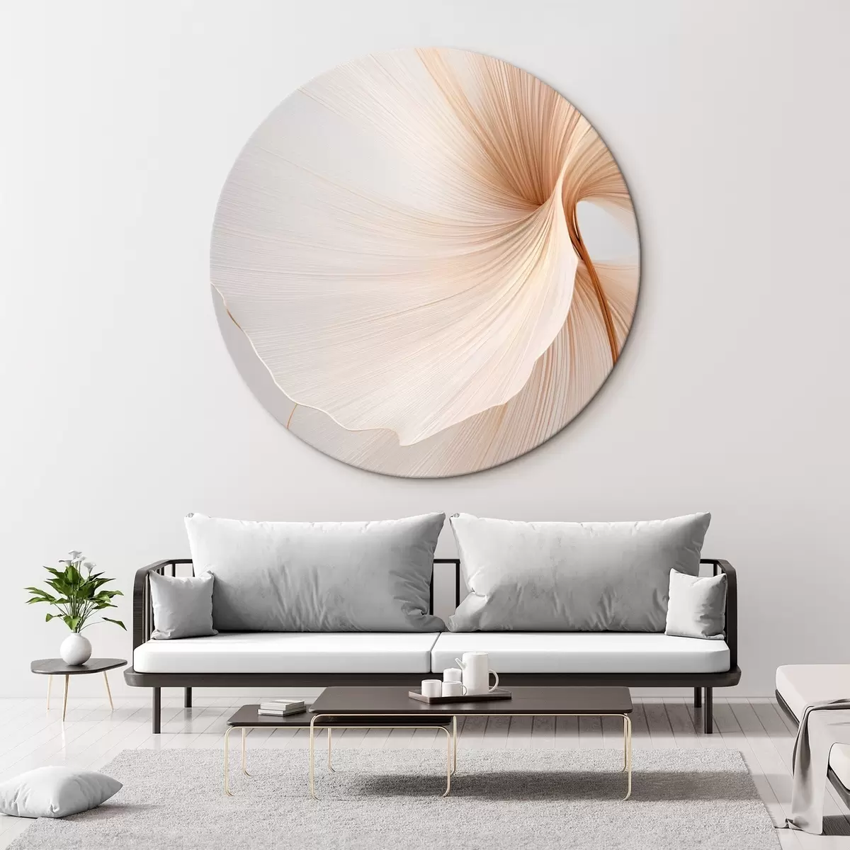 Runde Wandbilder Abstrakte Blumen mit dünnen, zarten Blütenblättern in Weiß- und Beigetönen r45922