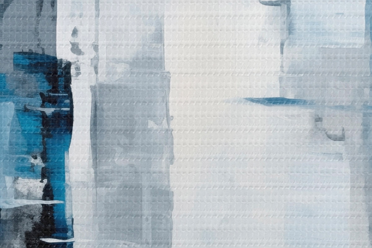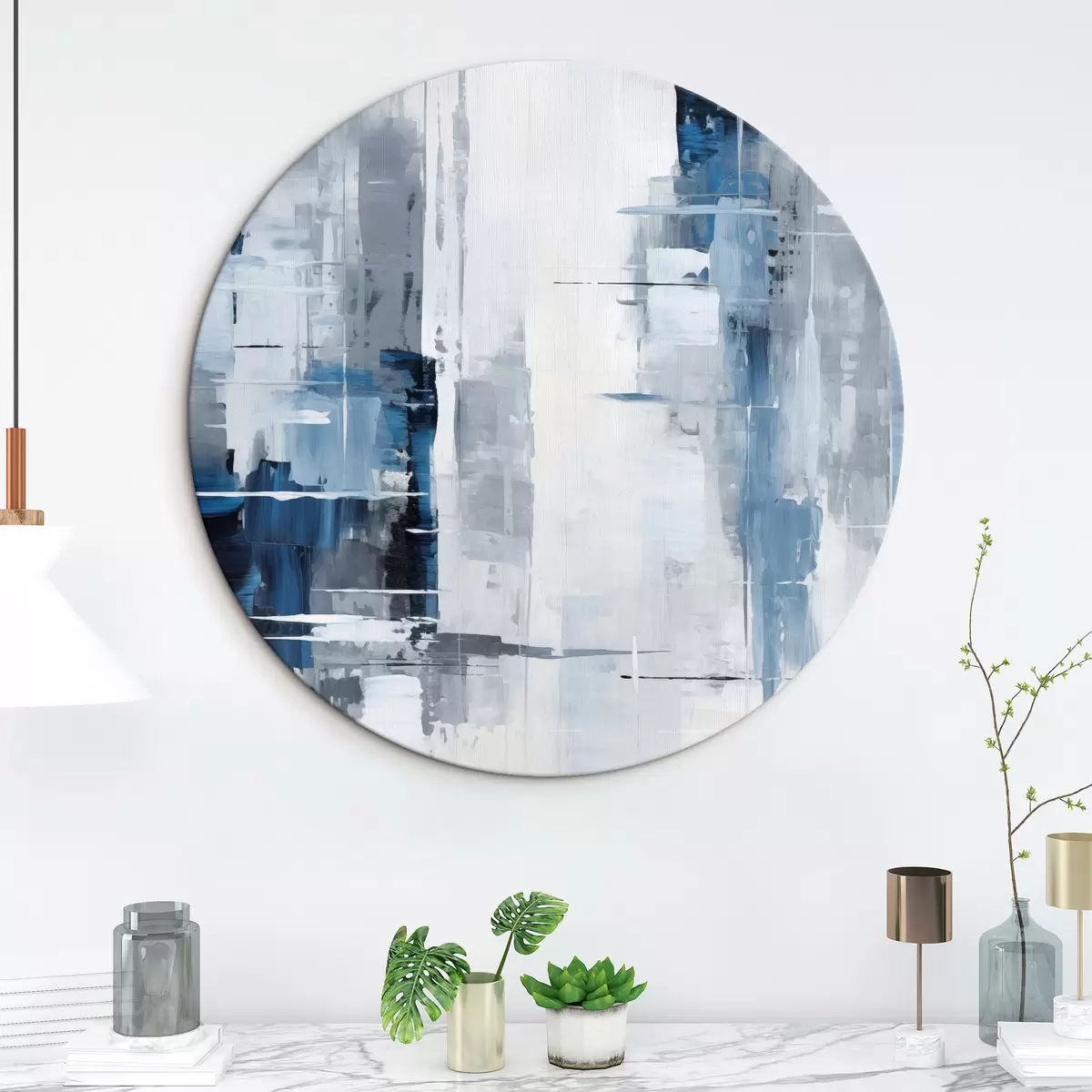 Runde Wandbilder Abstrakte Malerei-Imitation mit blauen, grauen und weißen Farben, vertikalen Linien und geometrischen Formen Nr r45926