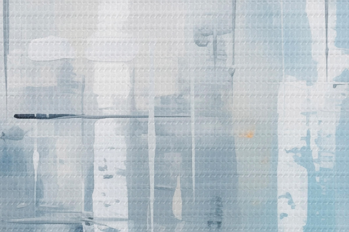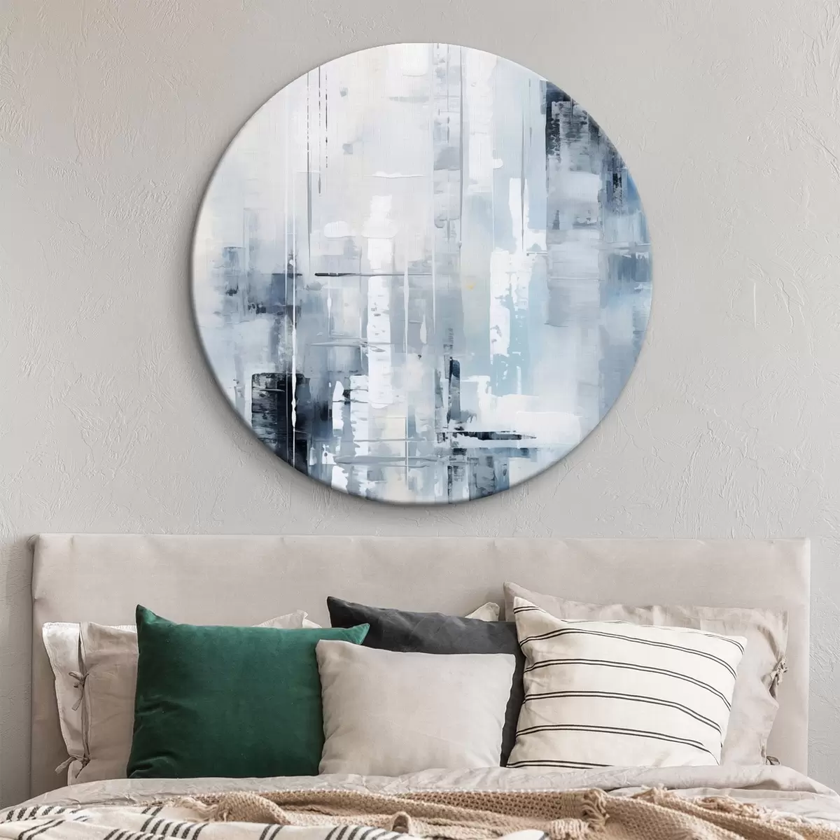 Runde Wandbilder Abstrakte Malerei-Imitation mit blauen, grauen und weißen Farben, vertikalen Linien und geometrischen Formen Nr r45927