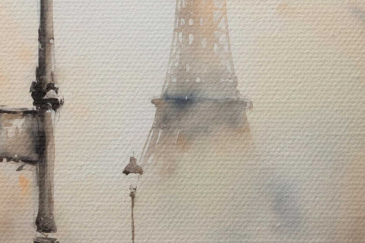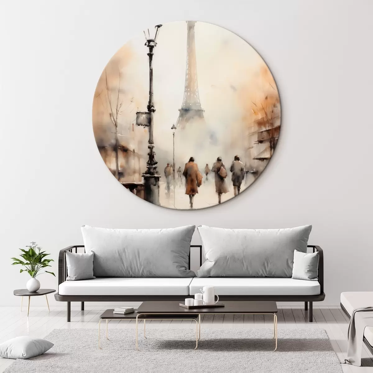Runde Wandbilder Ein regnerischer Herbsttag in Paris mit dem Eiffelturm im Hintergrund und Vintage-Straßenlaternen Nr r45931