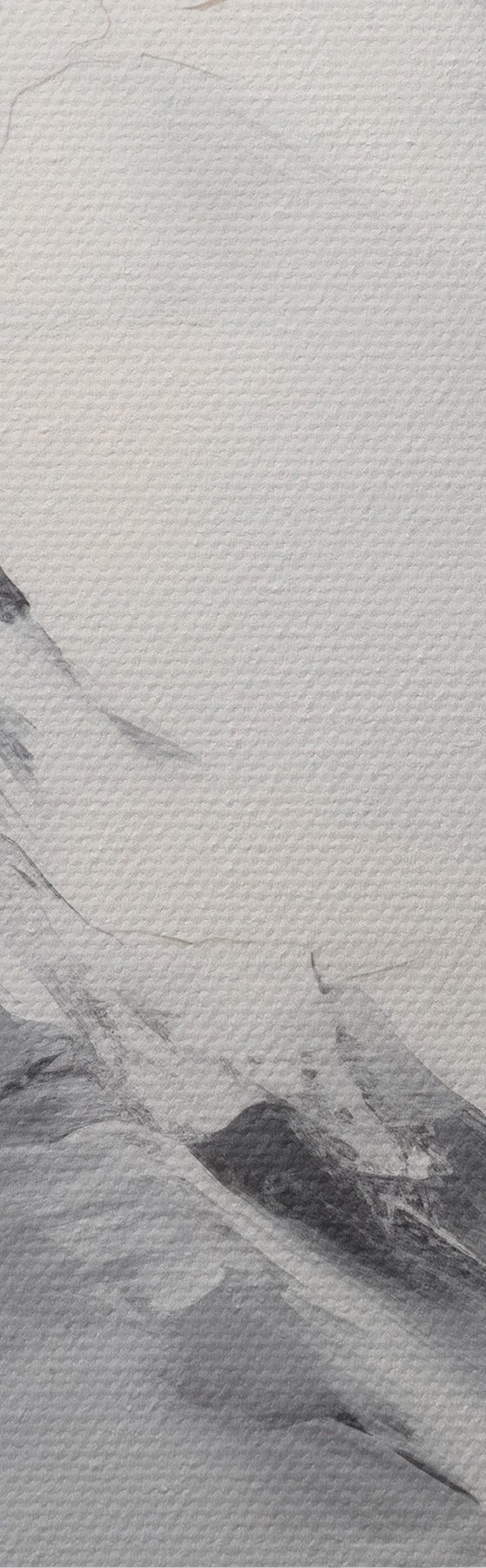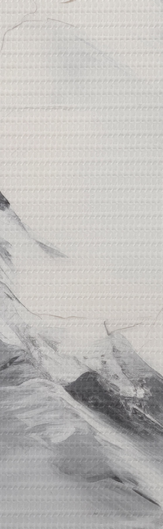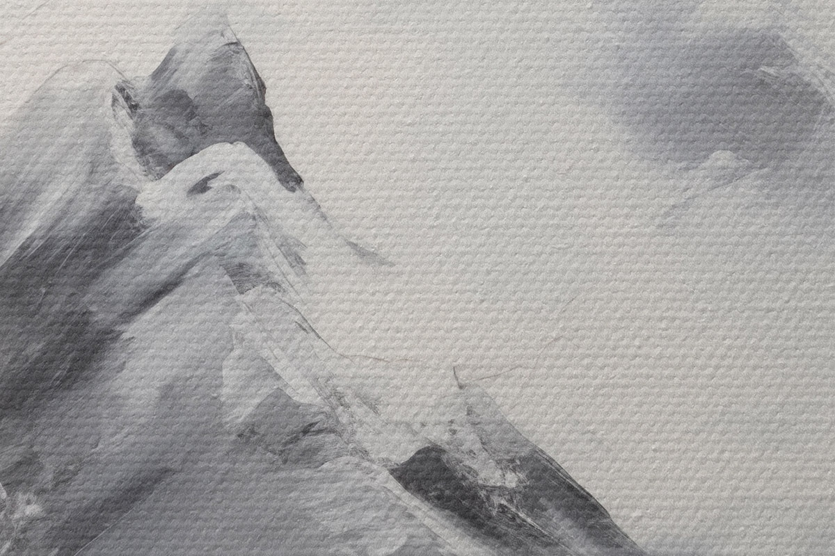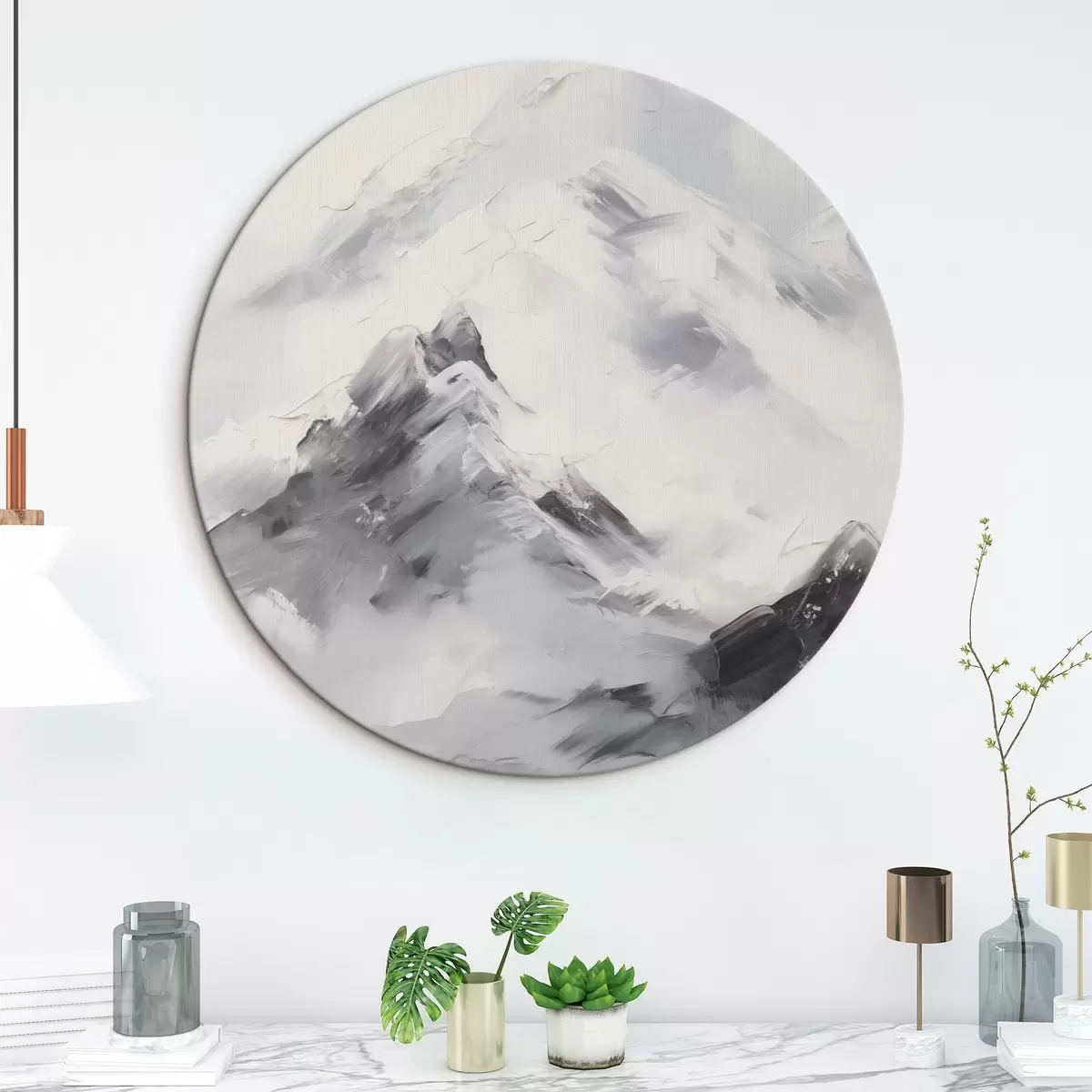 Runde Wandbilder Verschneite Berggipfel mit grauen Schatten, grauer Himmel, Pinselstriche, strukturiert, minimalistisch r45933