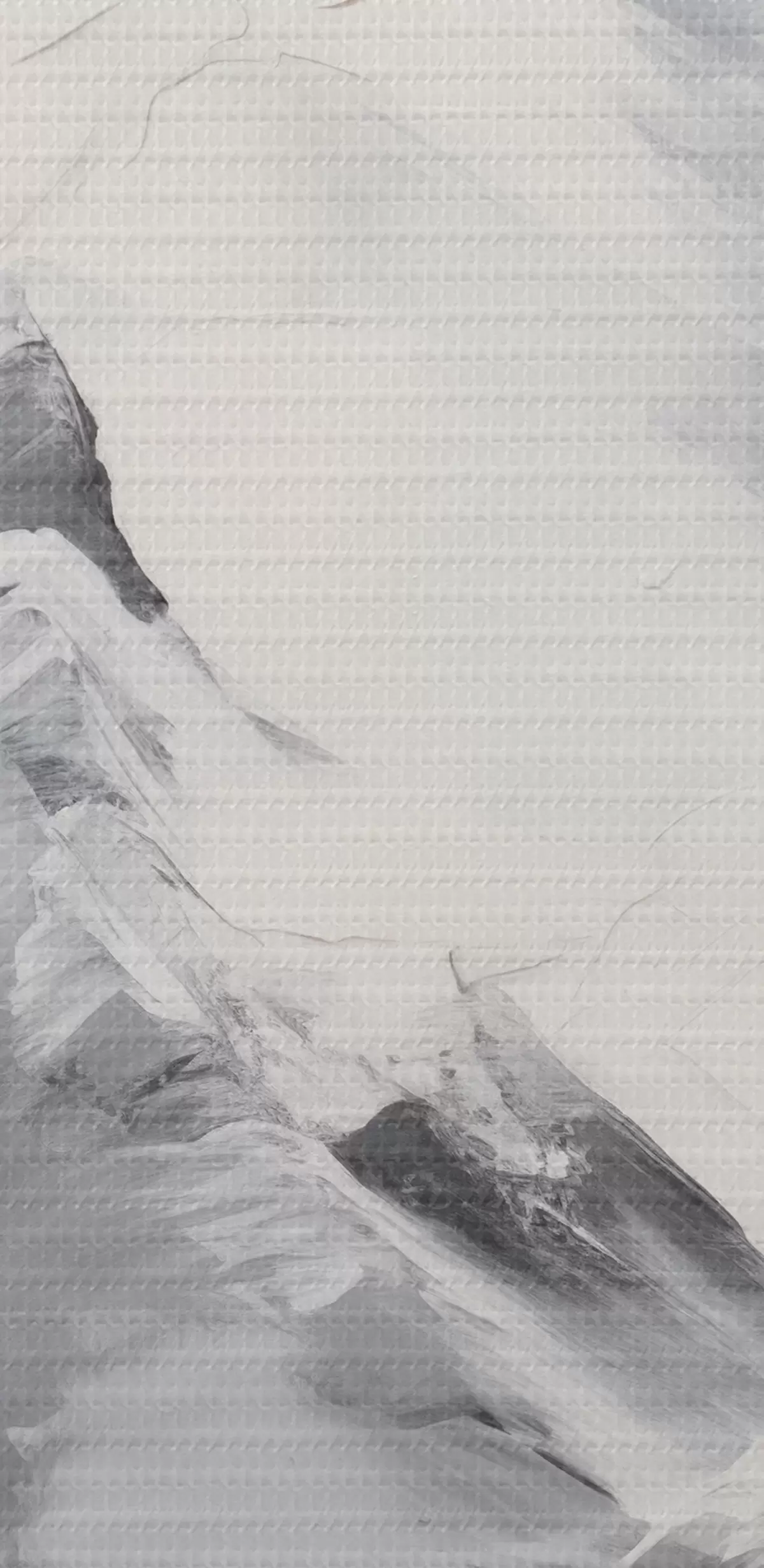 Runde Wandbilder Verschneite Berggipfel mit grauen Schatten, grauer Himmel, Pinselstriche, strukturiert, minimalistisch r45933