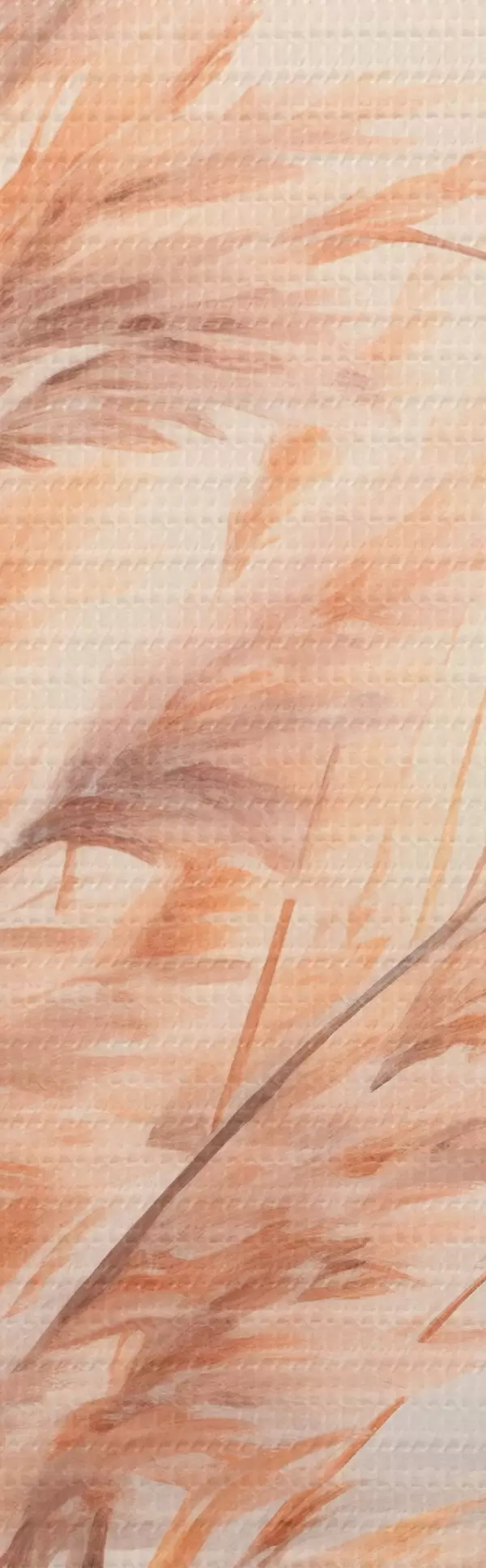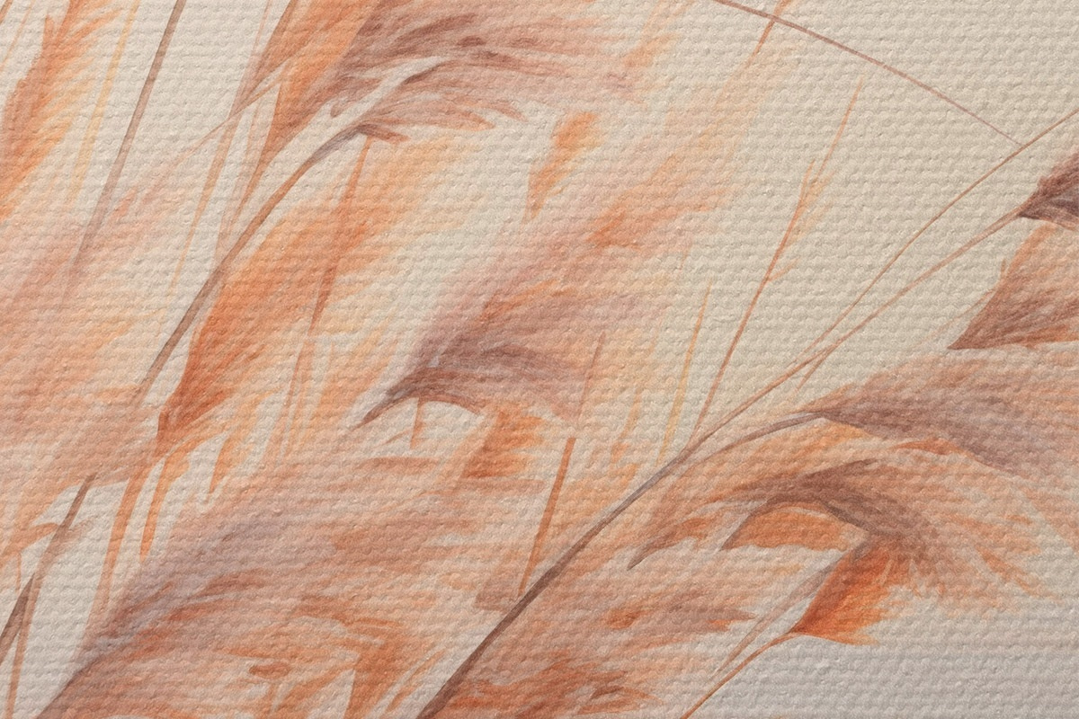 Runde Wandbilder Pampasgras mit pastelloranger Farbpalette, hellrosa Himmel, eine ruhige Landschaft r45934