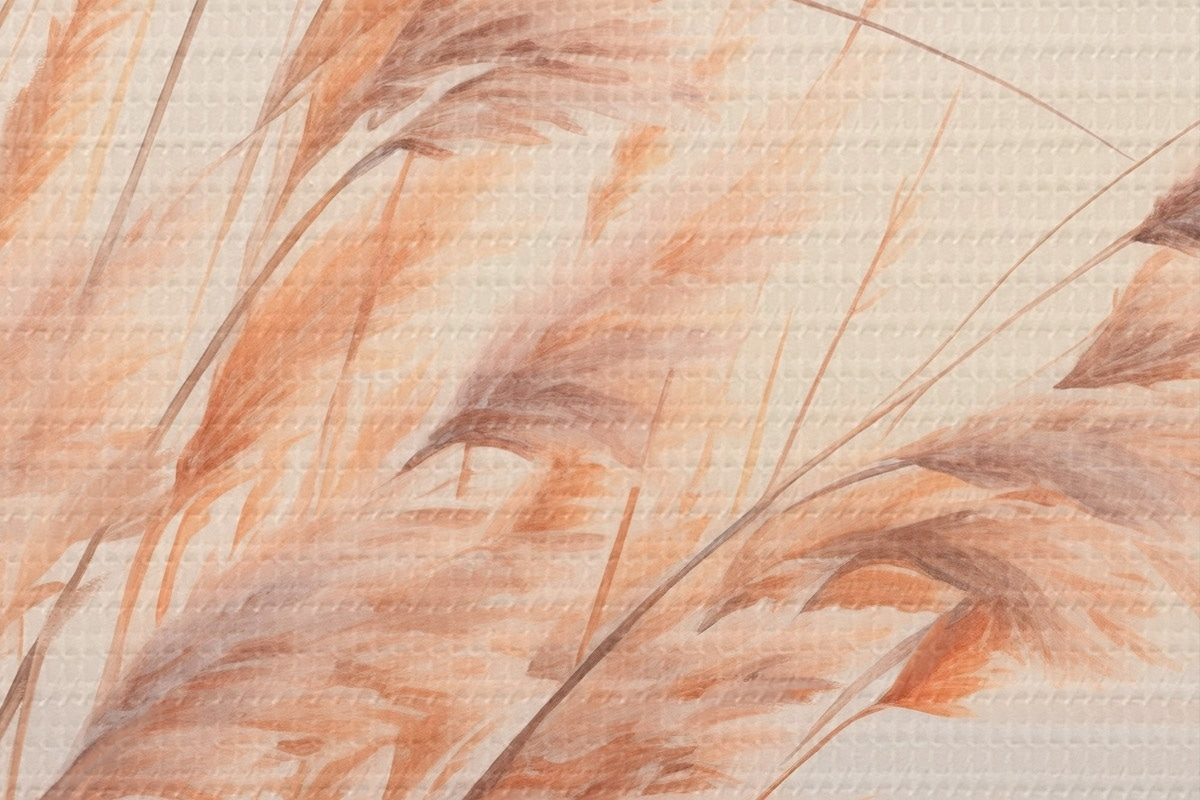 Runde Wandbilder Pampasgras mit pastelloranger Farbpalette, hellrosa Himmel, eine ruhige Landschaft Nr r45934