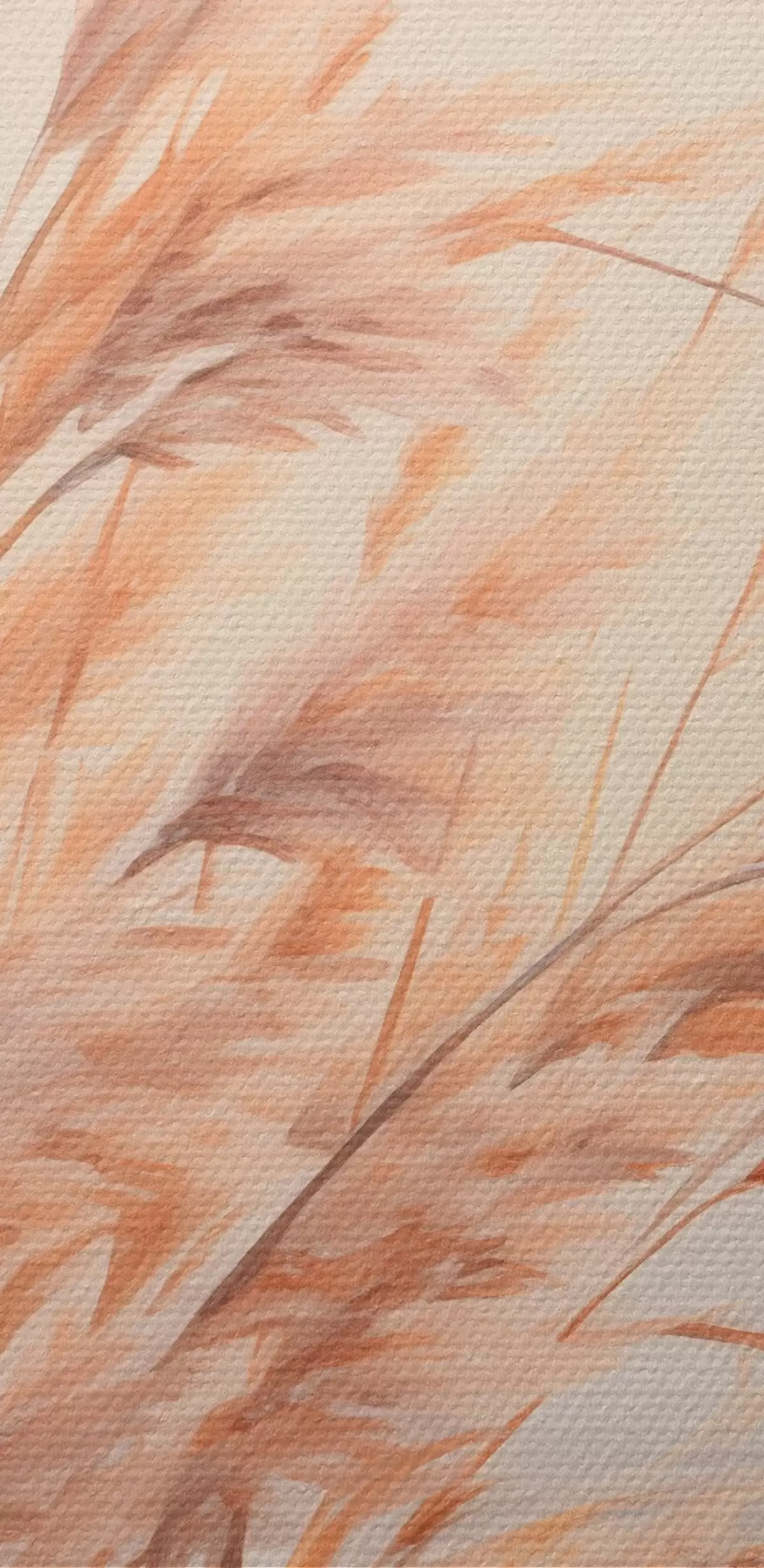 Runde Wandbilder Pampasgras mit pastelloranger Farbpalette, hellrosa Himmel, eine ruhige Landschaft r45934
