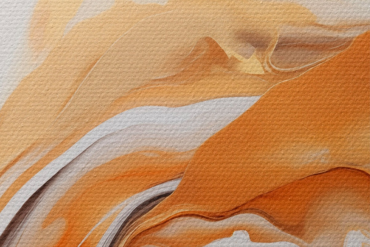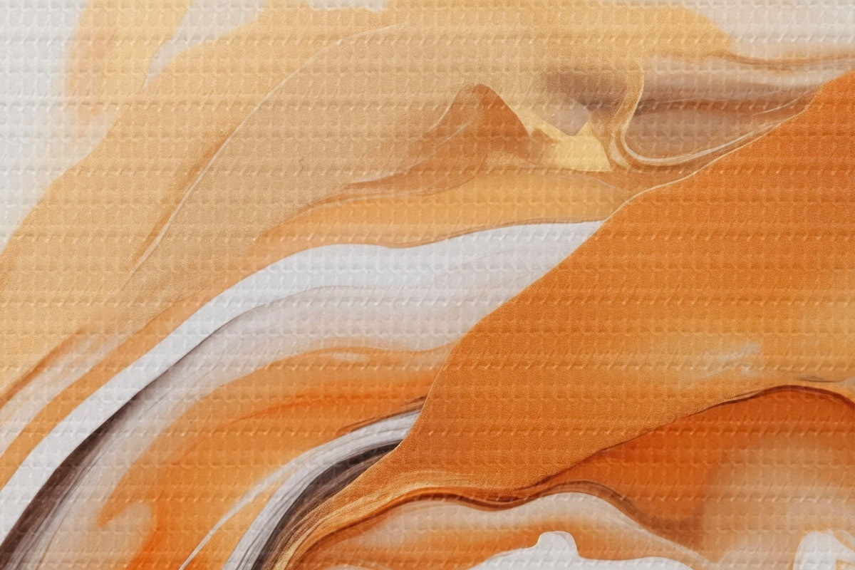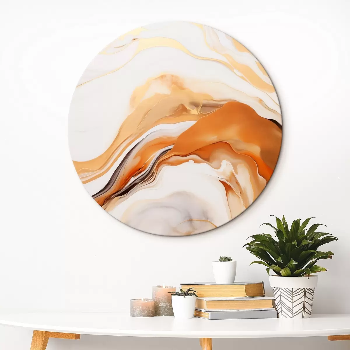 Runde Wandbilder Abstrakte Malerei-Imitation mit fließenden Formen in Weiß-, Orange- und Brauntönen, minimalistisch r45938
