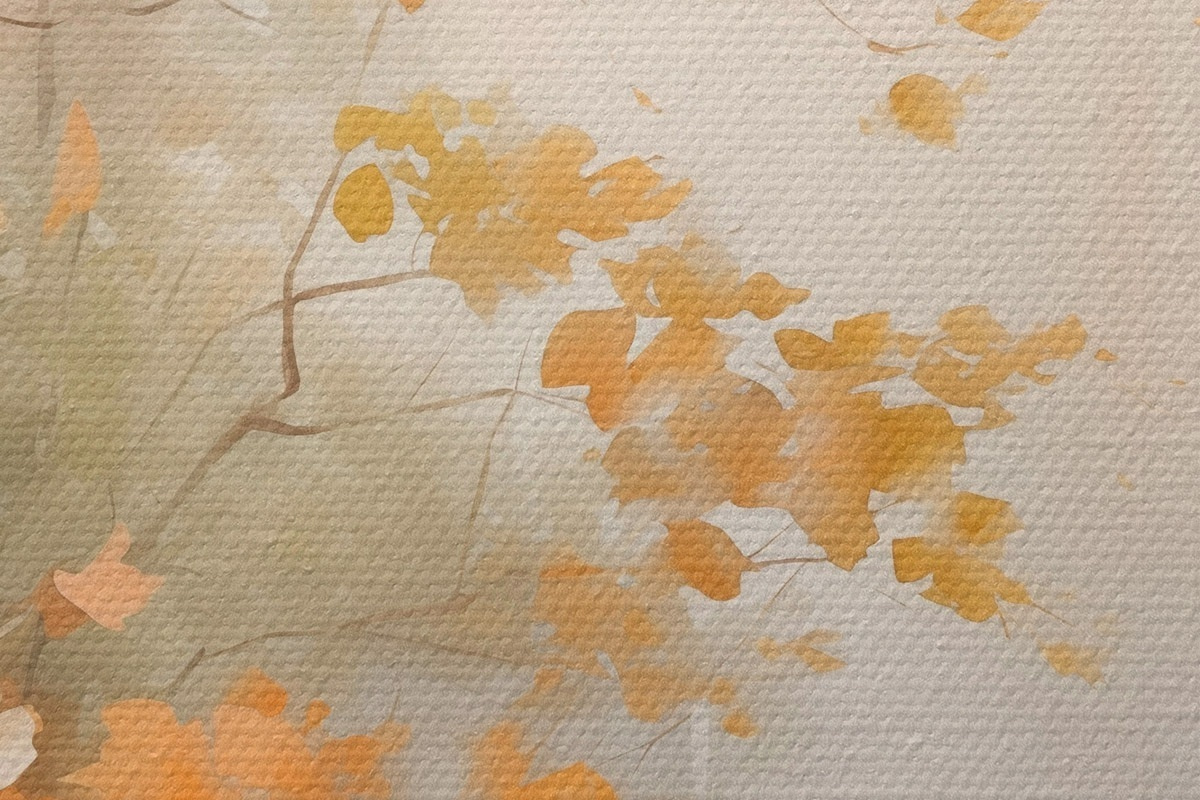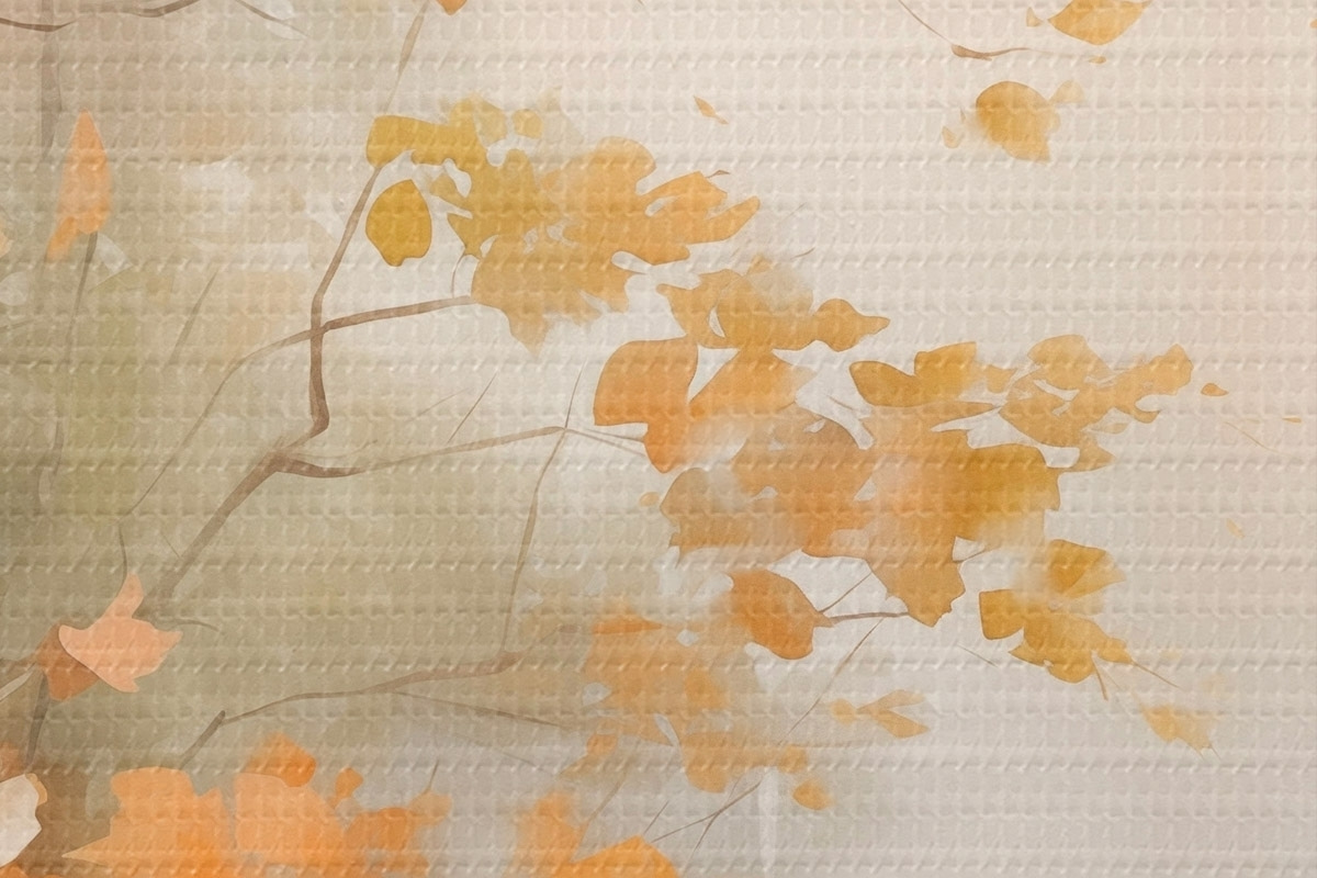 Runde Wandbilder Herbstliche Äste mit orangefarbenen Blättern in einem Wald mit sanftem Licht Nr r45940