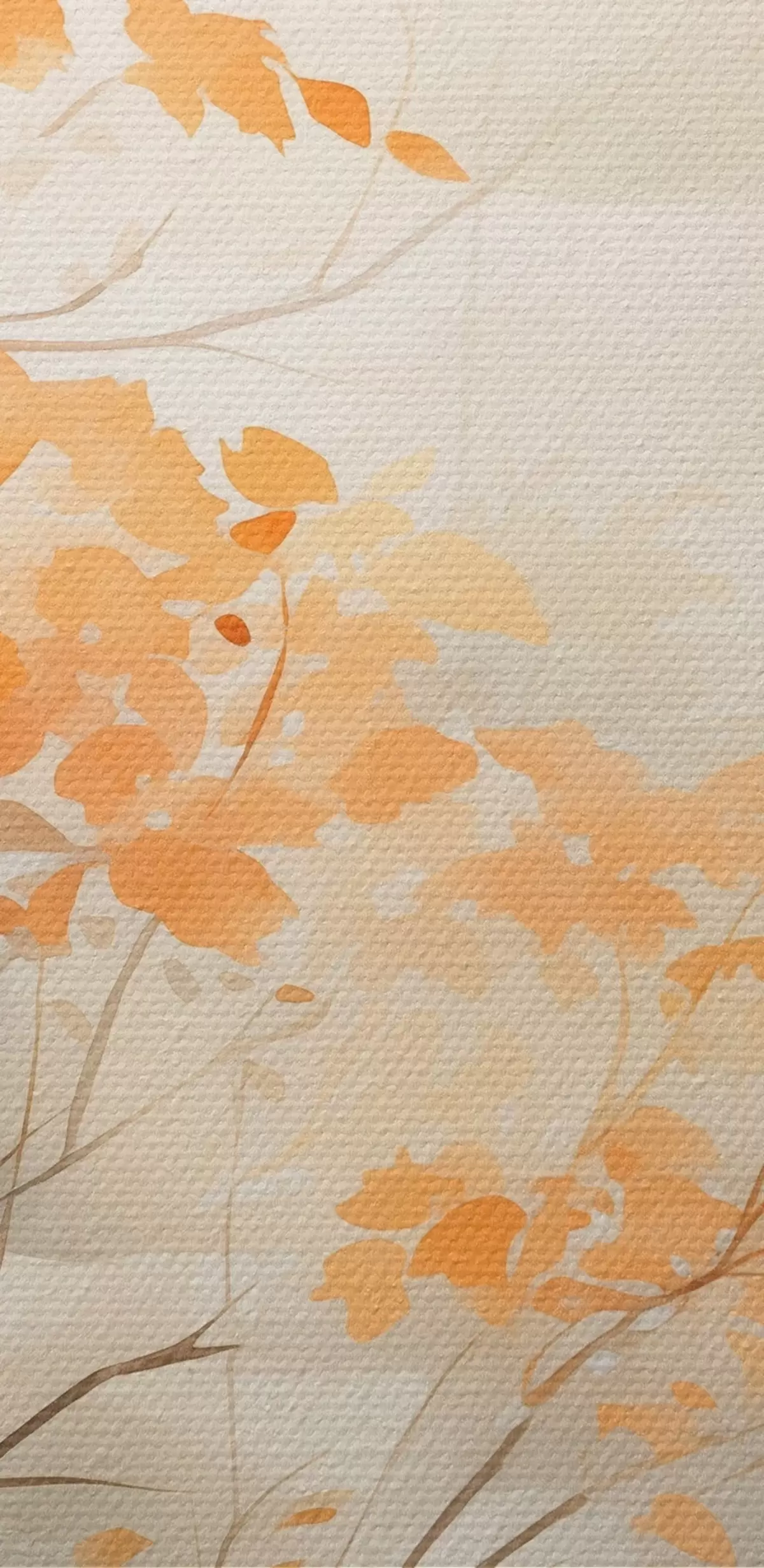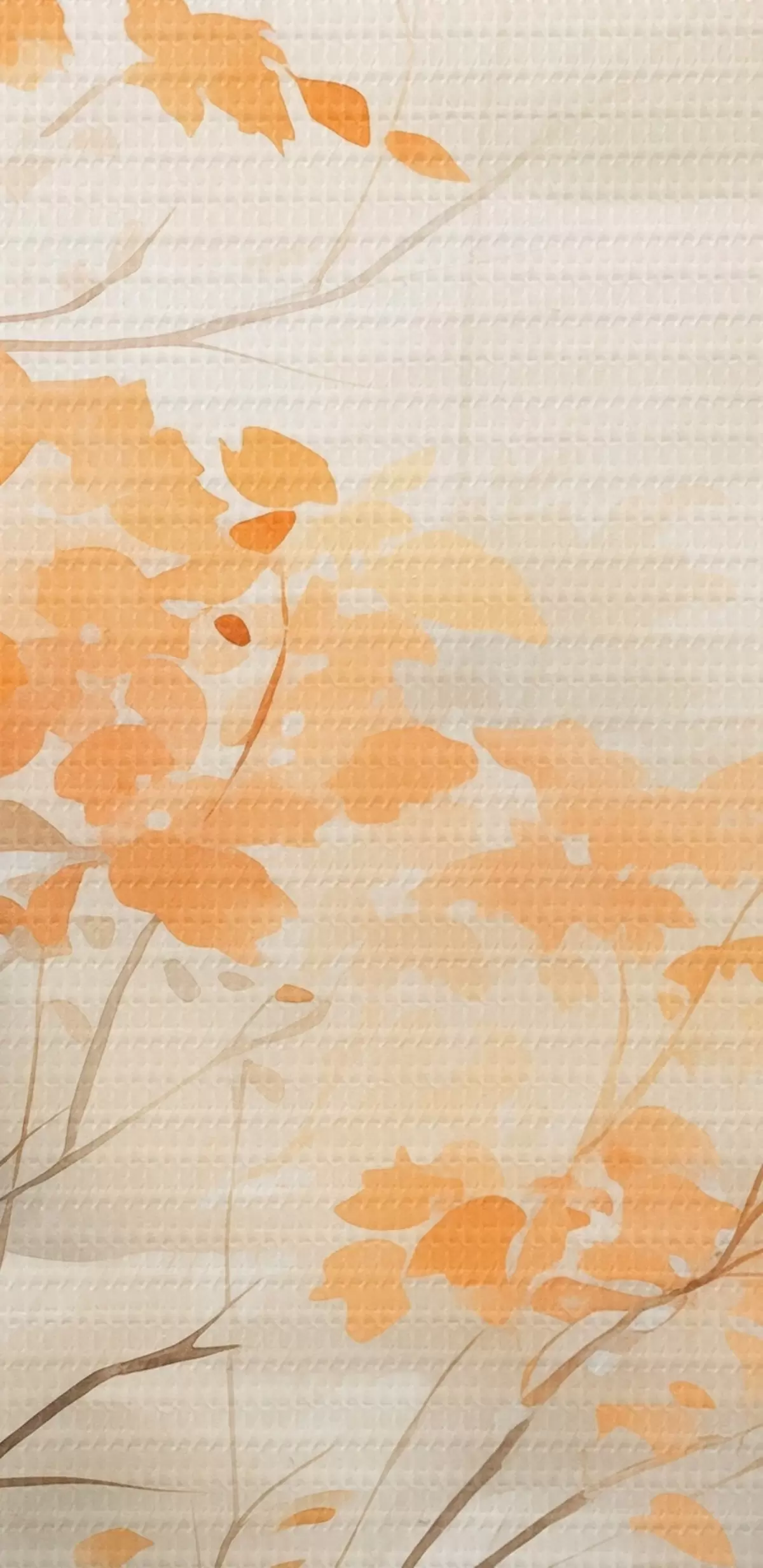 Runde Wandbilder Herbstbäume mit orangefarbenen Blättern und Zweigen, sanfter Aquarellstil, zarte Pinselstriche r45941