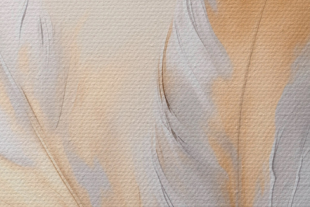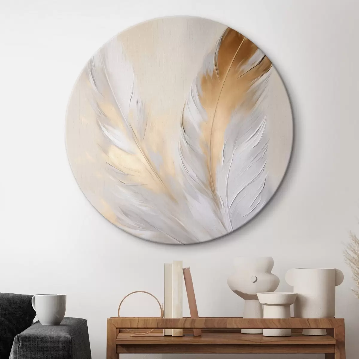 Runde Wandbilder Federn mit orangefarbenen Akzenten, sanfte Beleuchtung, strukturierte minimalistische Komposition, moderne Kunst r45944