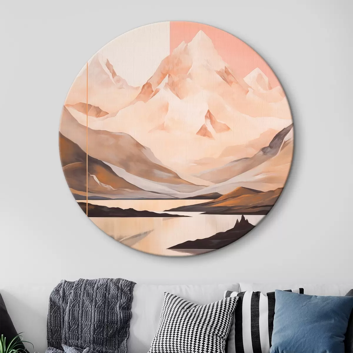 Runde Wandbilder Abstrakte Landschaft mit Bergen und einem See, Pastellfarben, minimalistischer Stil r45949