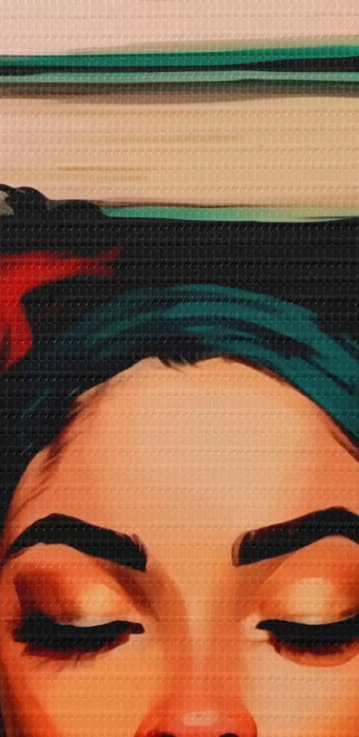 Um die Leinwand auf Keilrahmen zu spannen, ohne das Bild zu beschädigen, verwenden wir ein gespiegeltes Bild.