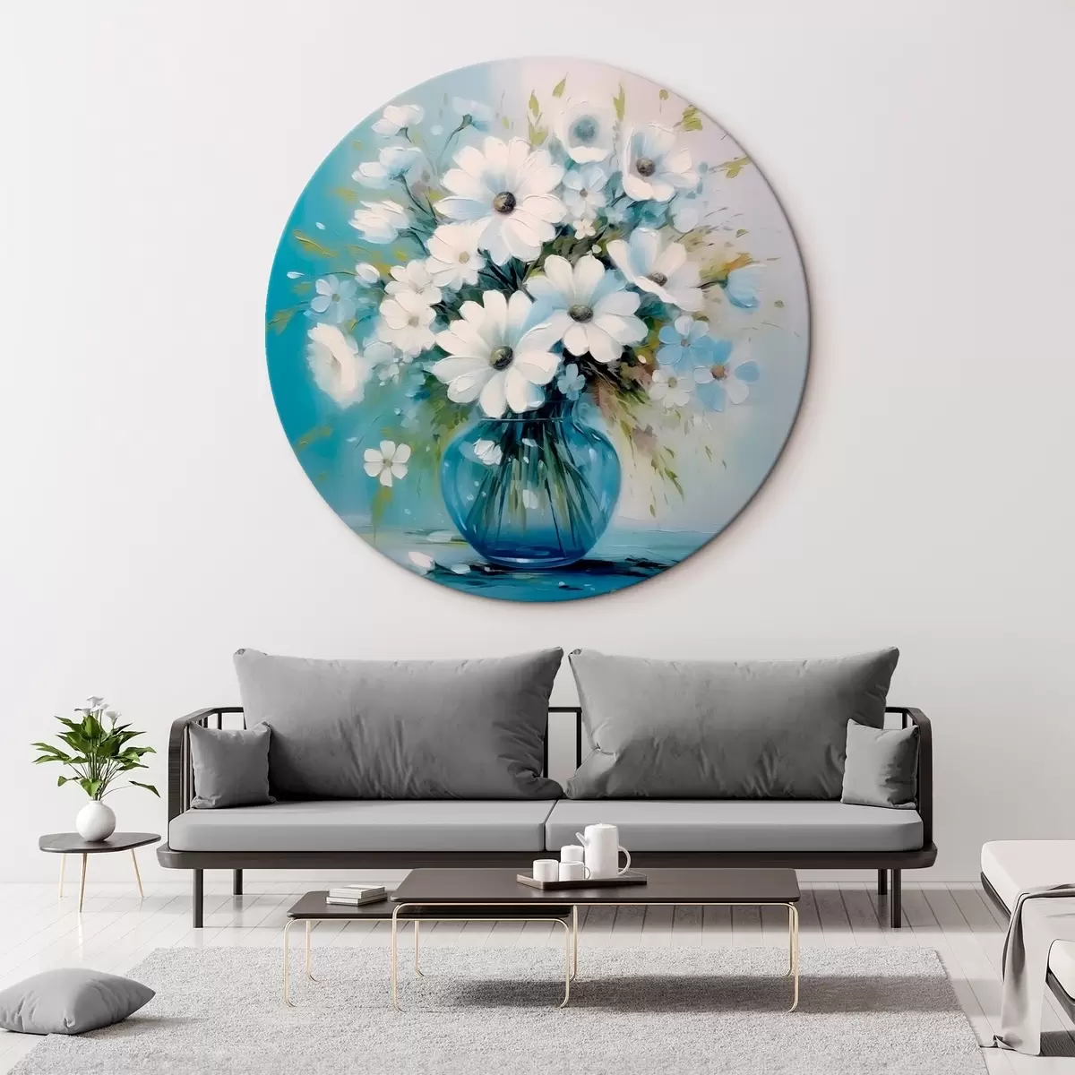 Runde Wandbilder Strauß Gänseblümchen in einer blauen Vase Nr r45959