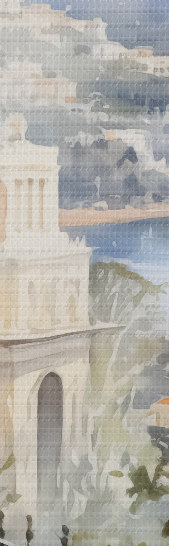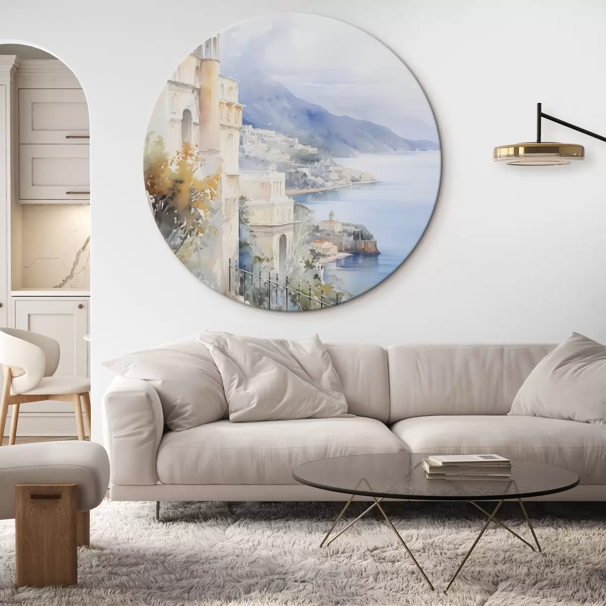Runde Wandbilder Bucht in der Nähe der Stadt, Aquarellimitation r45979