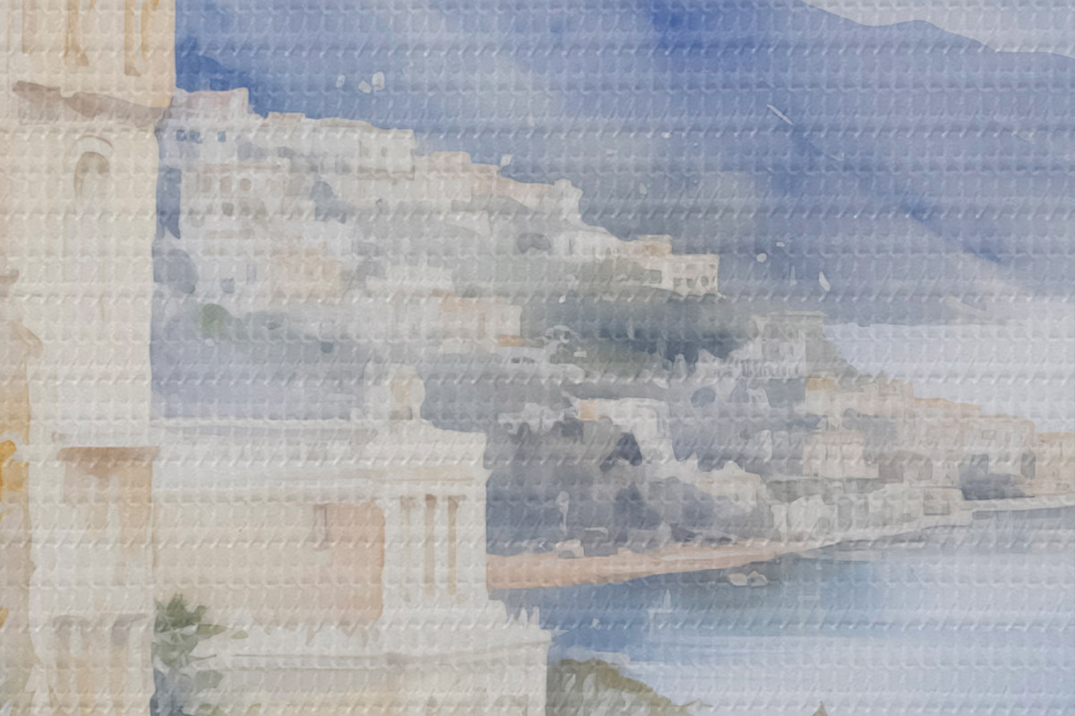 Runde Wandbilder Bucht in der Nähe der Stadt, Aquarellimitation Nr r45979