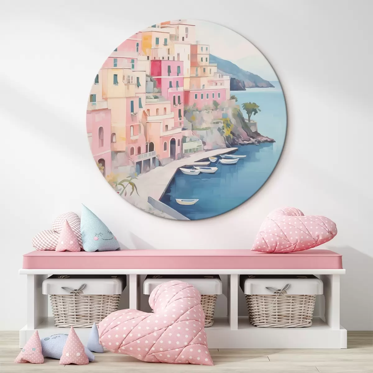 Runde Wandbilder Häuser an der Meeresbucht r46066