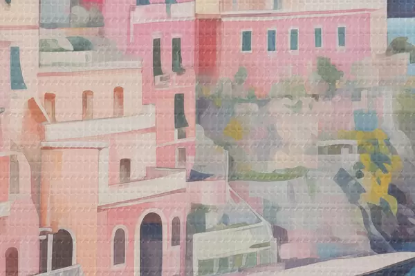 Runde Wandbilder Häuser an der Meeresbucht Nr r46066